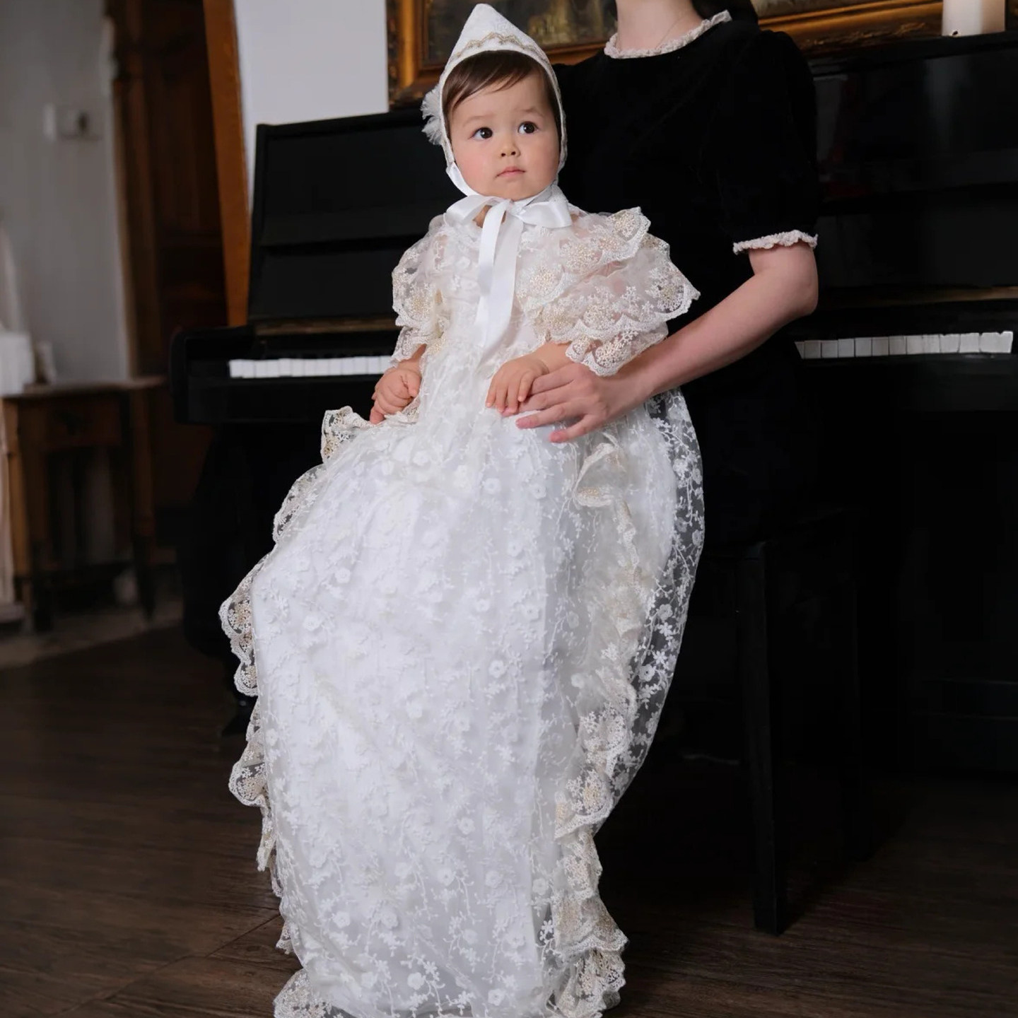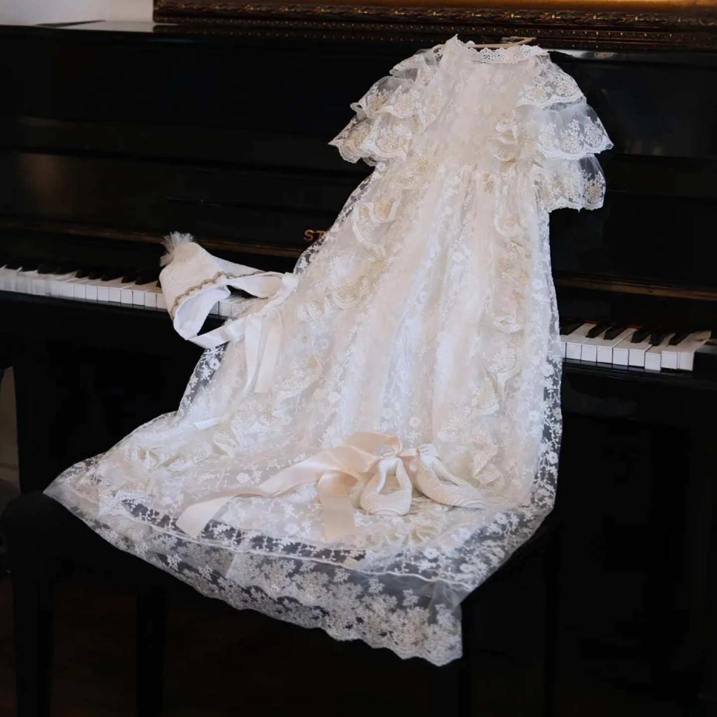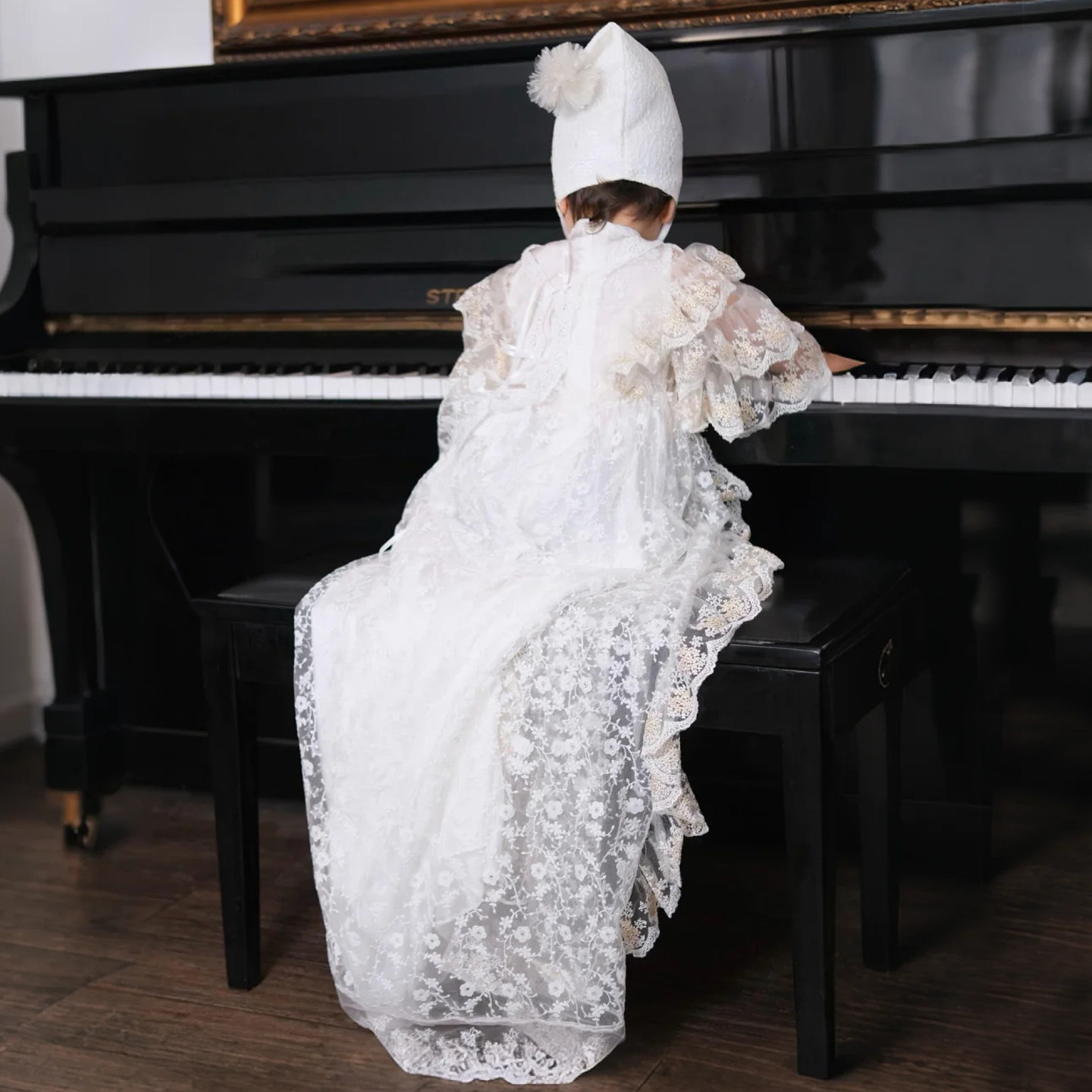 国内现货Hanakimi蕾丝新生儿婴儿男女童宝宝满月百天礼服公主裙