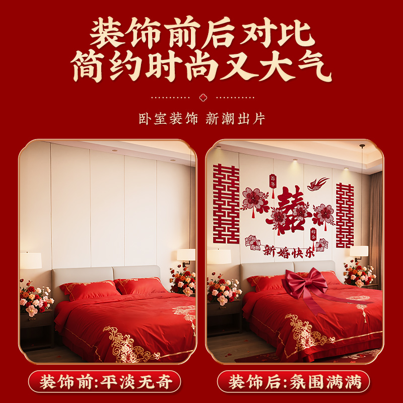 婚房布置套装结婚婚礼女方出嫁闺房卧室床头装饰新房男方背景拉花