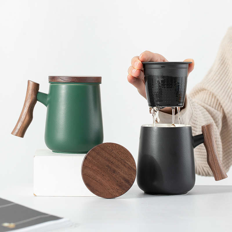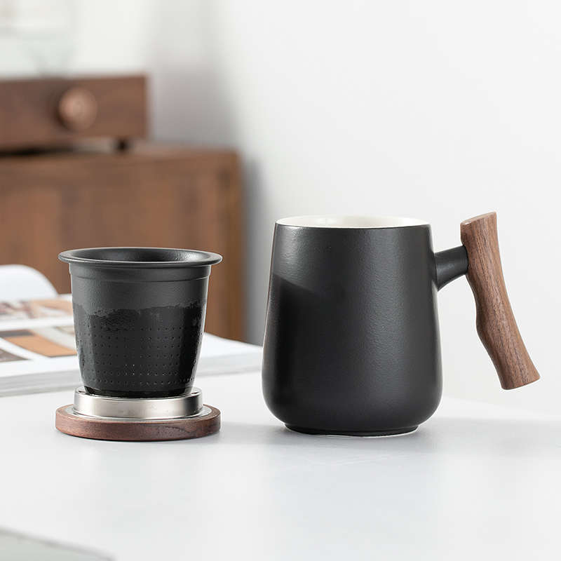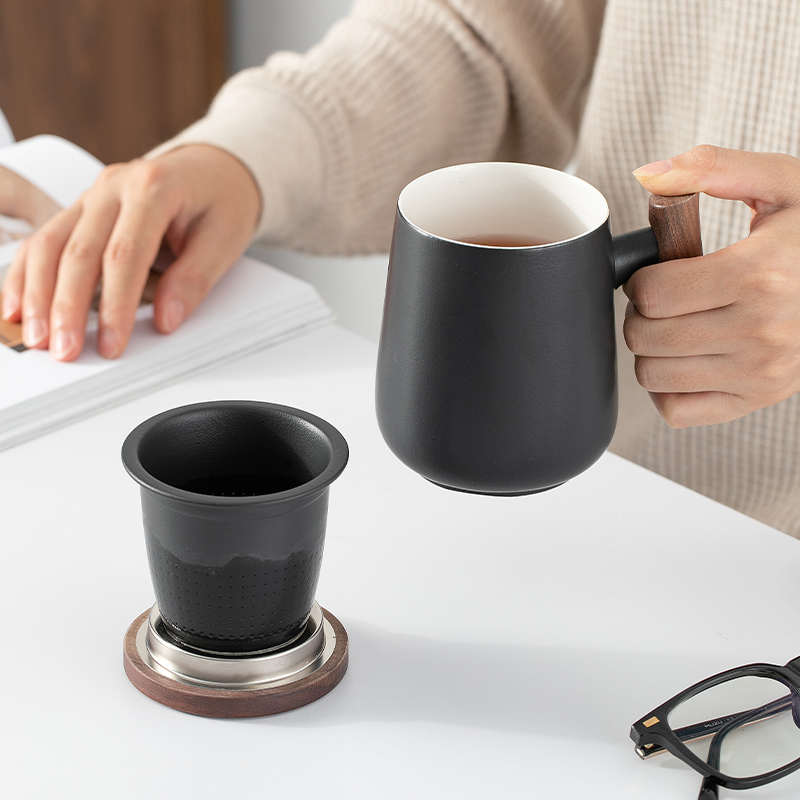 茶水分离泡茶杯子男士个人办公室茶道杯过滤茶漏陶瓷水杯雕刻logo