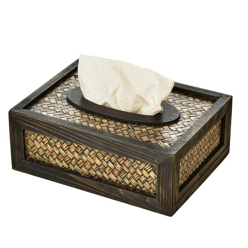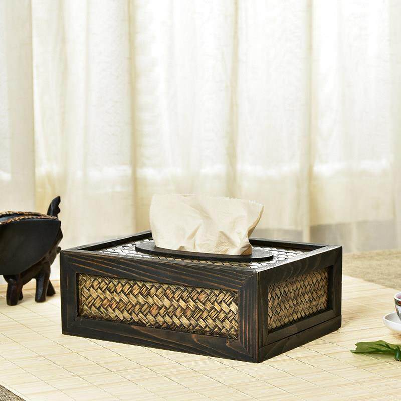 泰国竹编纸巾盒家用客厅创意实木质覆古藤编轻奢新中式餐巾卫生纸