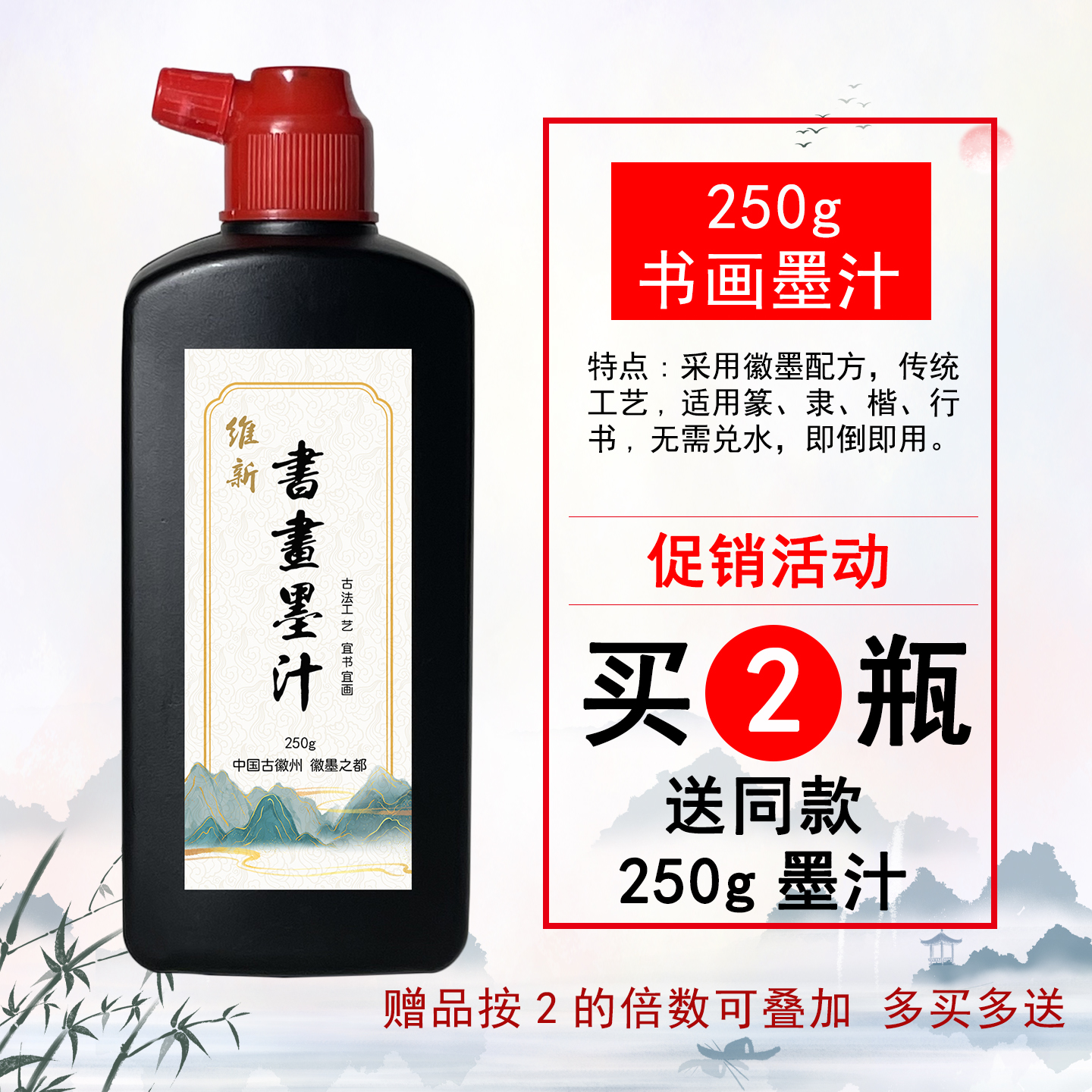 维新墨汁书法专用文房四宝墨水毛笔国画初学者练字250g500g墨液宣纸书画练习毛笔字黑色金墨白墨朱墨作品墨汁