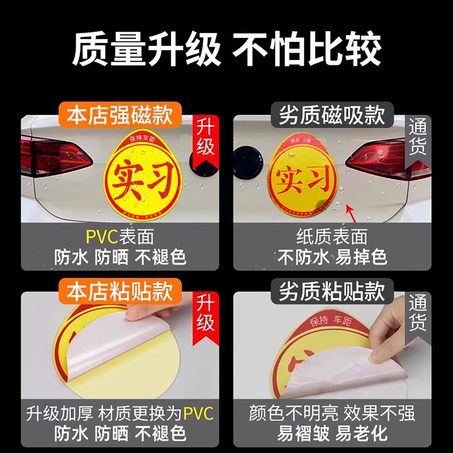 实习磁性标志贴纸反光贴汽车后窗磁吸式防水防晒不留痕迹实习贴纸
