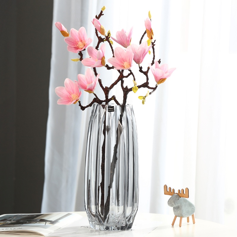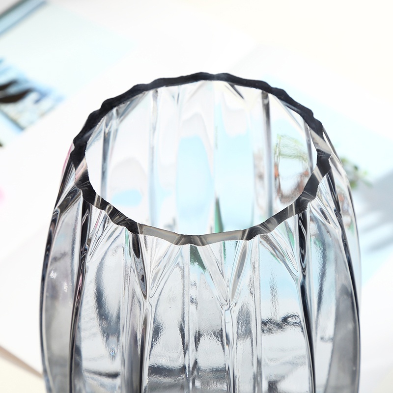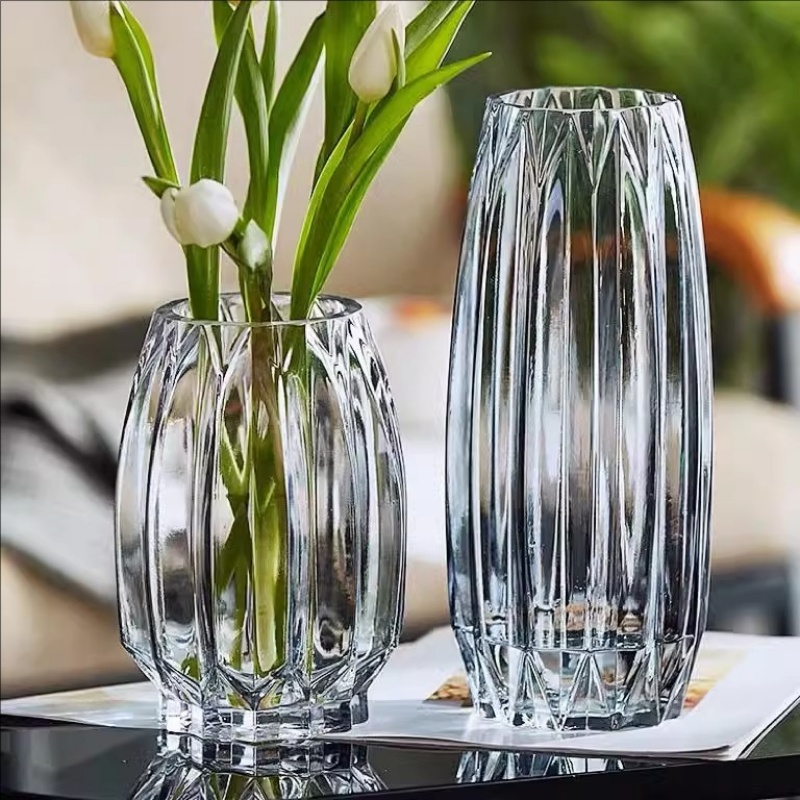 北欧轻奢玻璃花瓶透明客厅插花水养鲜花装饰花器摆件简约竖棱花瓶
