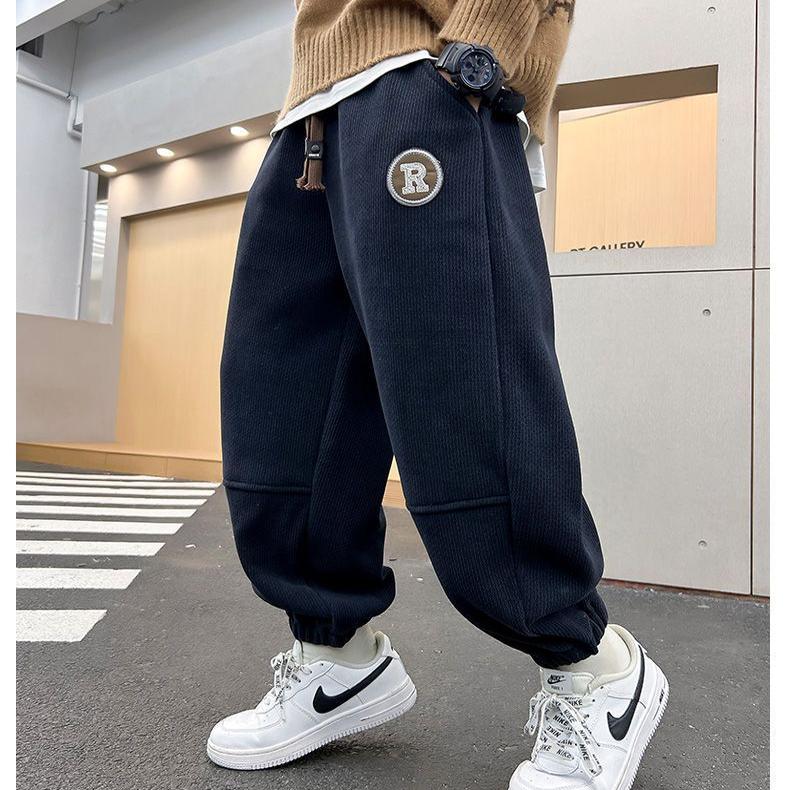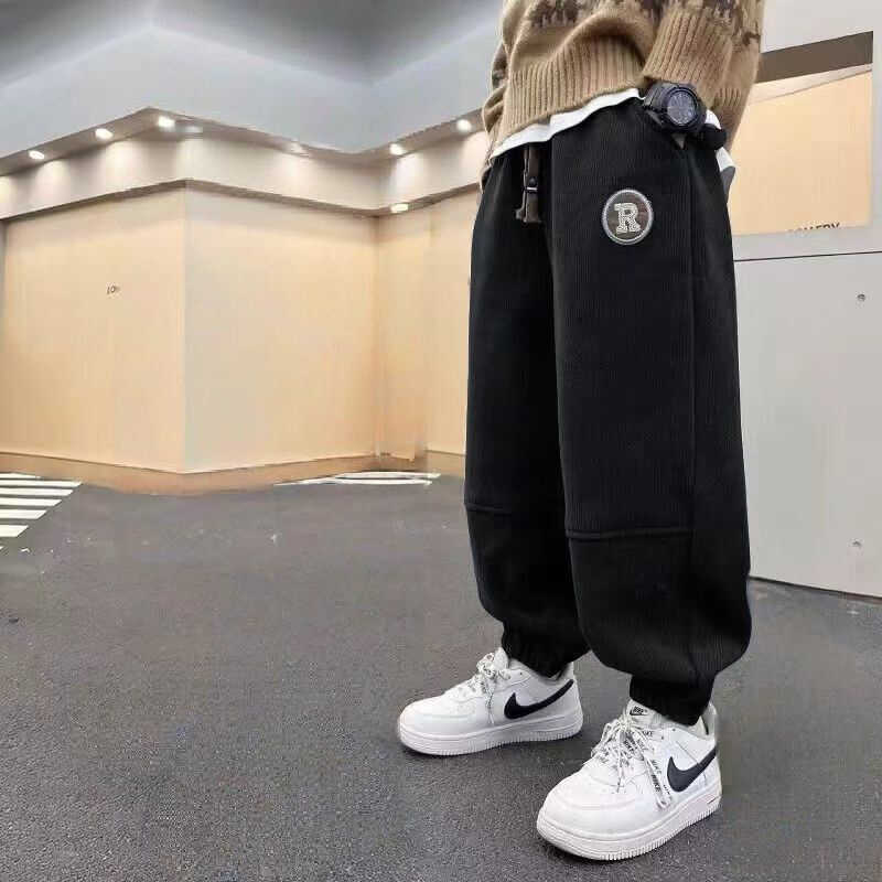 男童加绒裤子秋冬款2025新款春秋卫裤中大童加厚保暖运动外穿长裤
