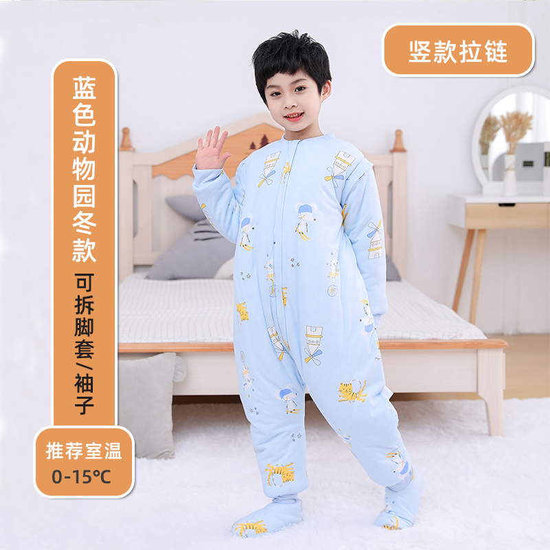 儿童睡袋中大童春秋薄棉小孩学生秋冬季加厚分腿带脚套宝宝防踢被
