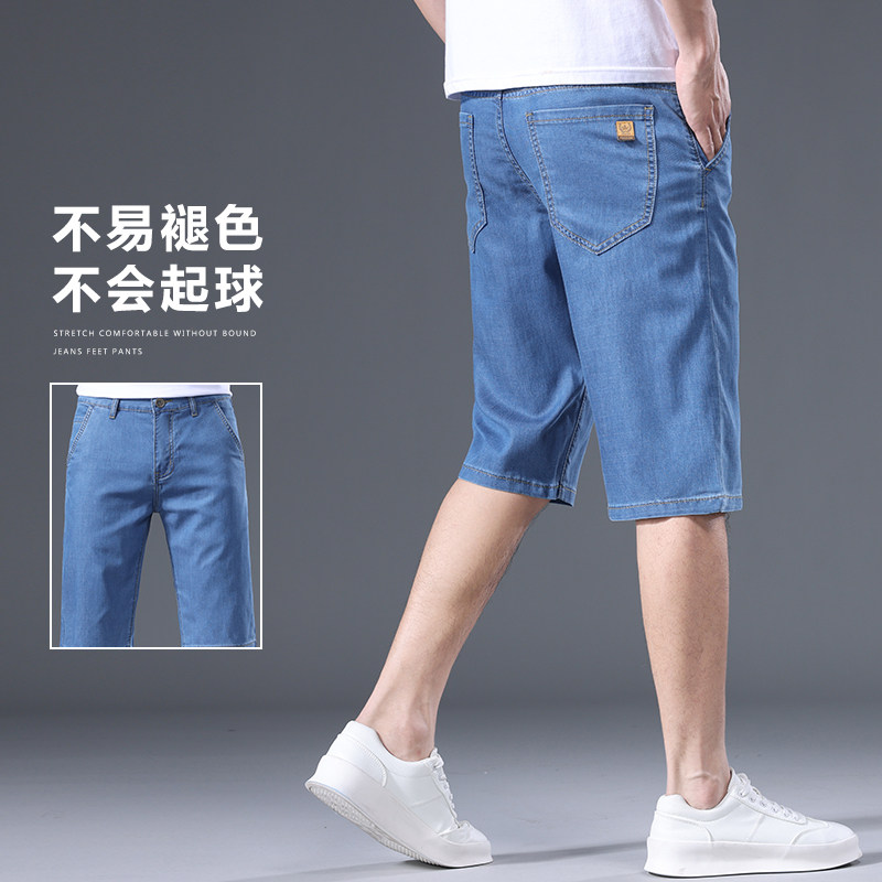 罗蒙冰丝牛仔短裤男款2025夏季新款潮牌宽松中裤超薄男士五分裤子