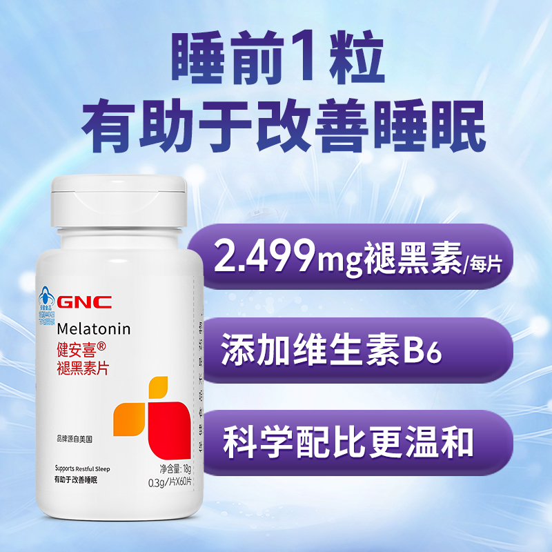 GNC健安喜 褪黑素维生素b6成人改善睡眠助眠正品