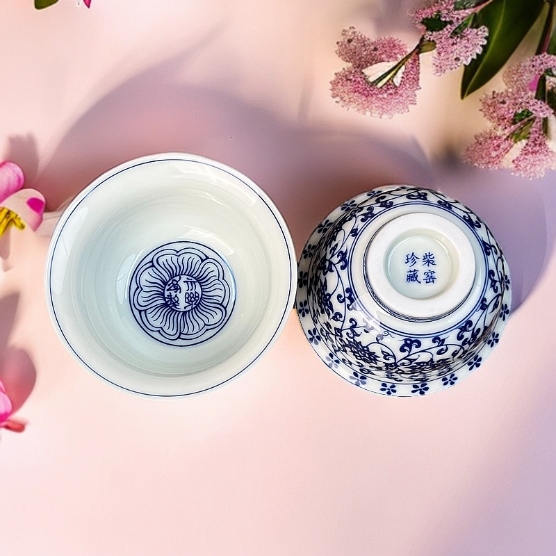 复古青花釉里红永乐缠枝莲压手杯陶瓷品茗杯家用大号主人杯个人杯