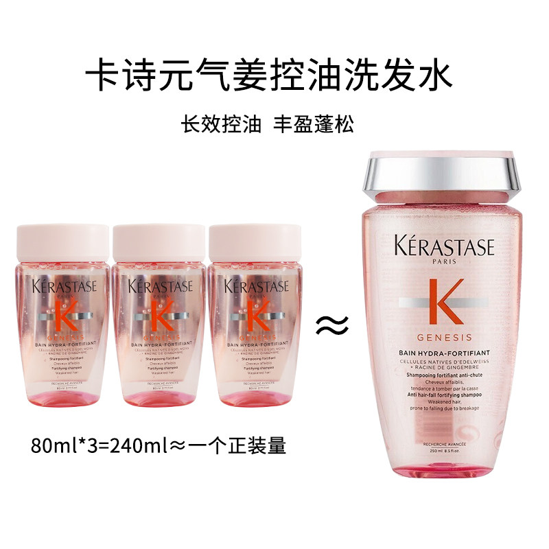 卡诗洗发水中样旅行装双重赋活元气姜控油丰盈蓬松洗发露80ml*3