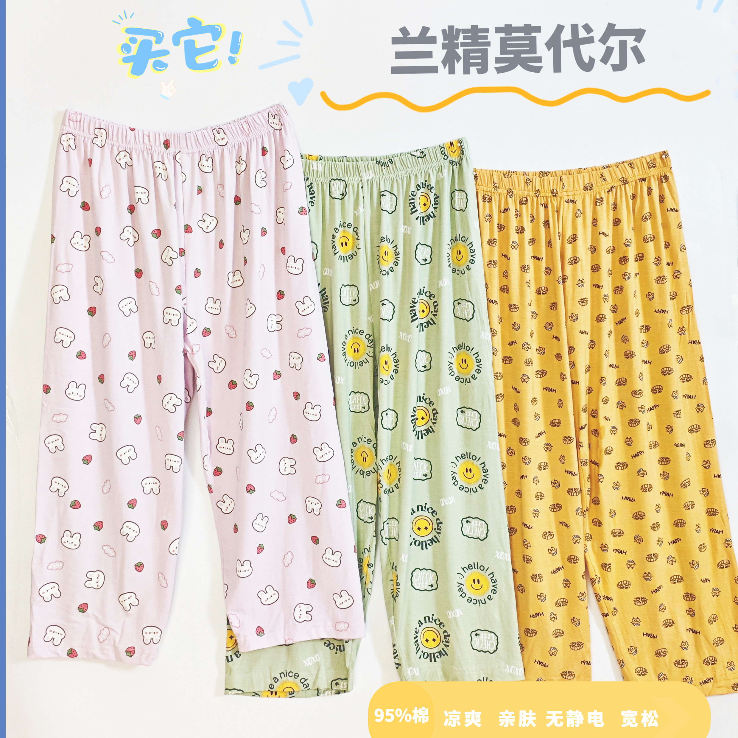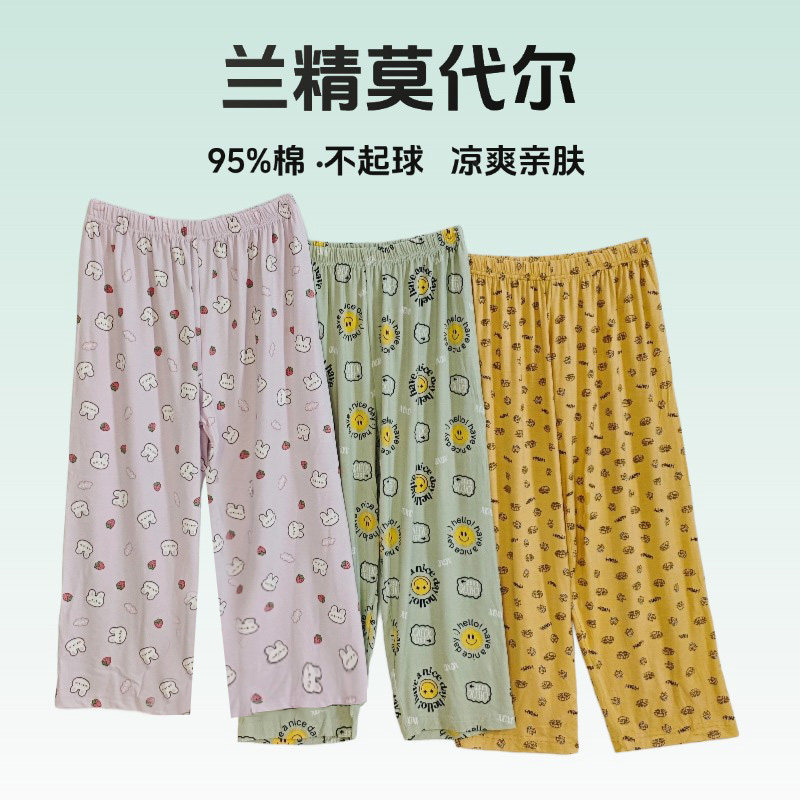 儿童七分裤夏五分超薄宽松莫代尔睡裤家居空调男女童中大童短裤子