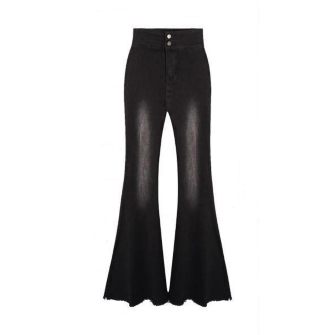 辣妹时髦气质黑色毛边大喇叭裤女