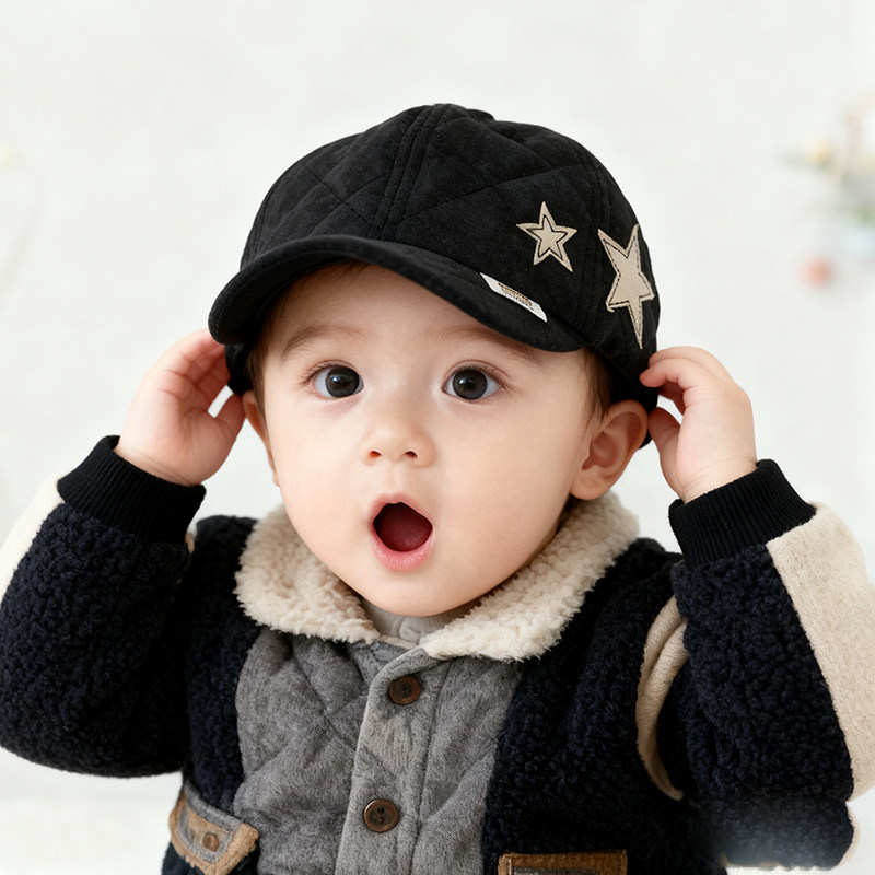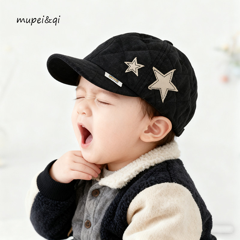 宝宝鸭舌帽秋冬季保暖男童女婴儿韩版星星灯芯绒棒球小童防风保暖