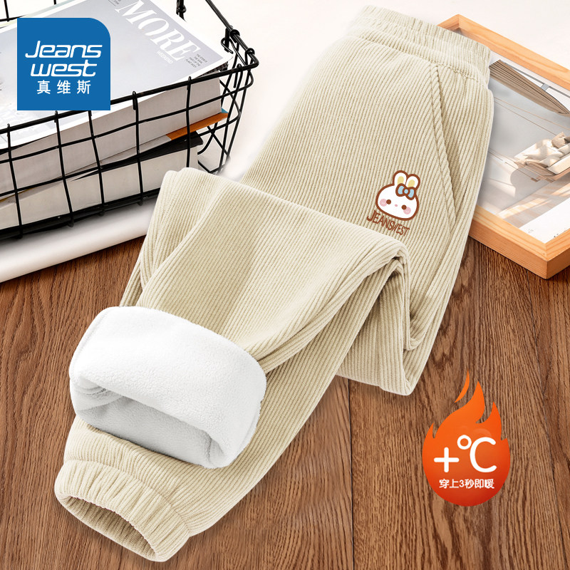 真维斯童装儿童加绒裤子2025新款中大童加厚保暖长裤女童灯芯绒裤