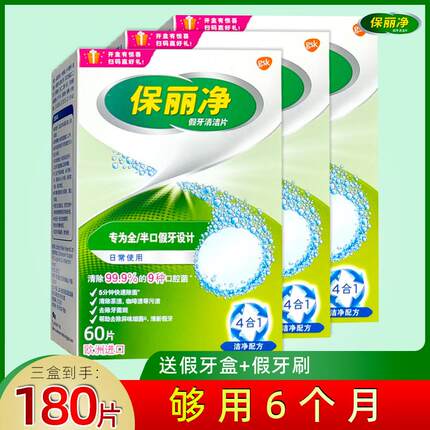 官方正品保持器泡腾清洁片正畸假牙清洁片60片 保丽净保利净发泡