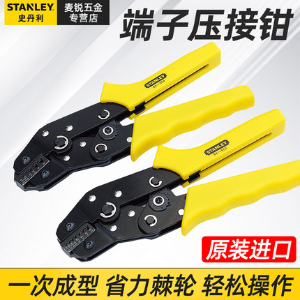 史丹利进口绝缘端子压接钳 欧式裸端子压线钳 棘轮冷压端子压接钳