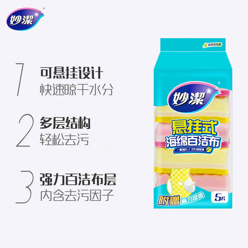 妙洁百洁布擦悬挂式海绵洗碗厨房抹布清洁碗盘易去油污