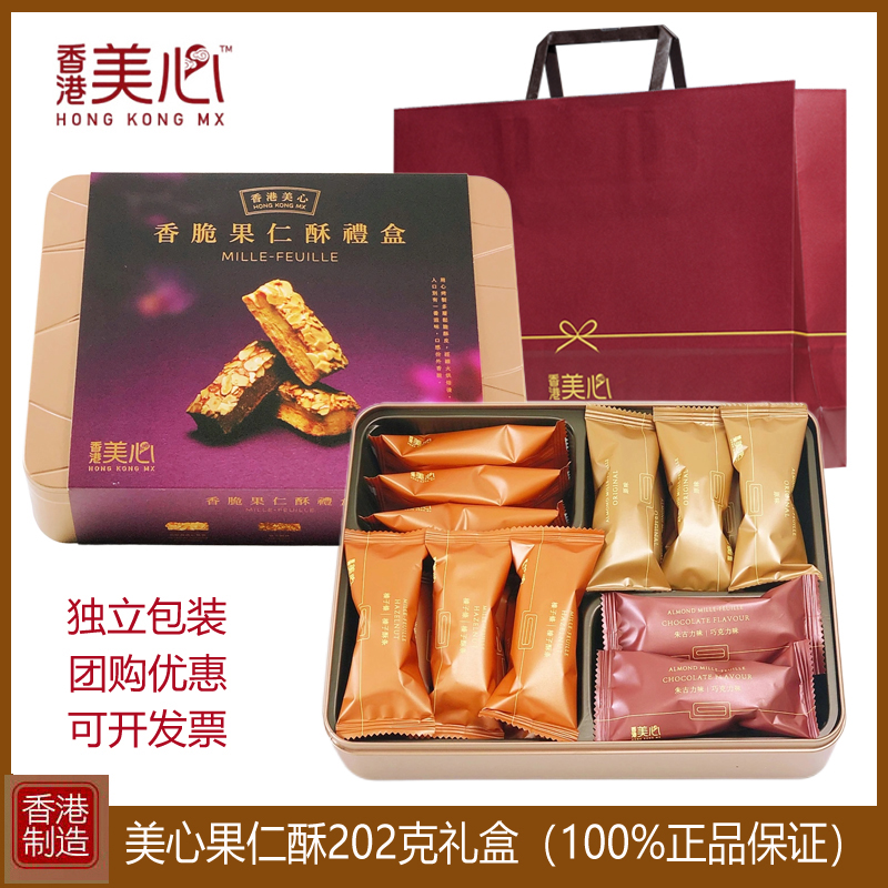 特产年货香港美心香脆果仁酥礼盒进口零食糕点202g杏仁条曲奇饼干