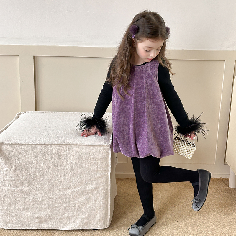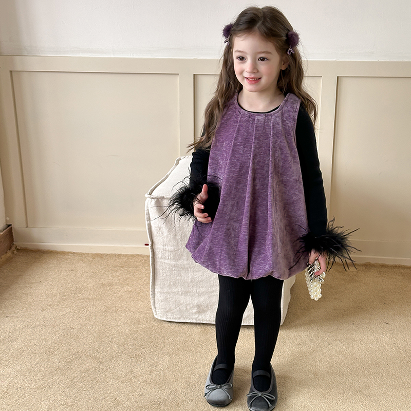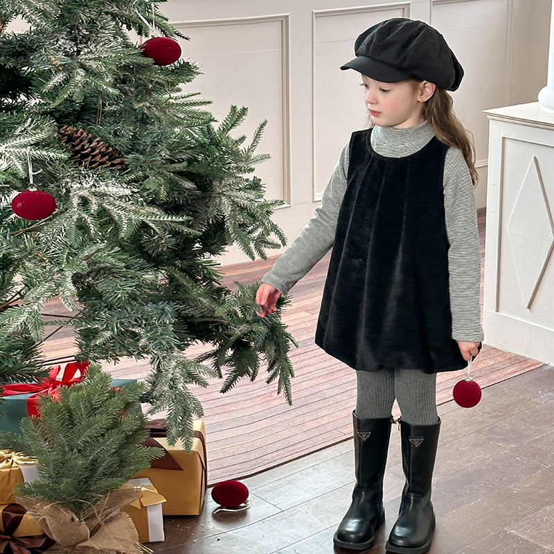 清仓 女童韩版保暖加厚斜纹呢洋气氛围感叠穿花苞背心裙 24B039