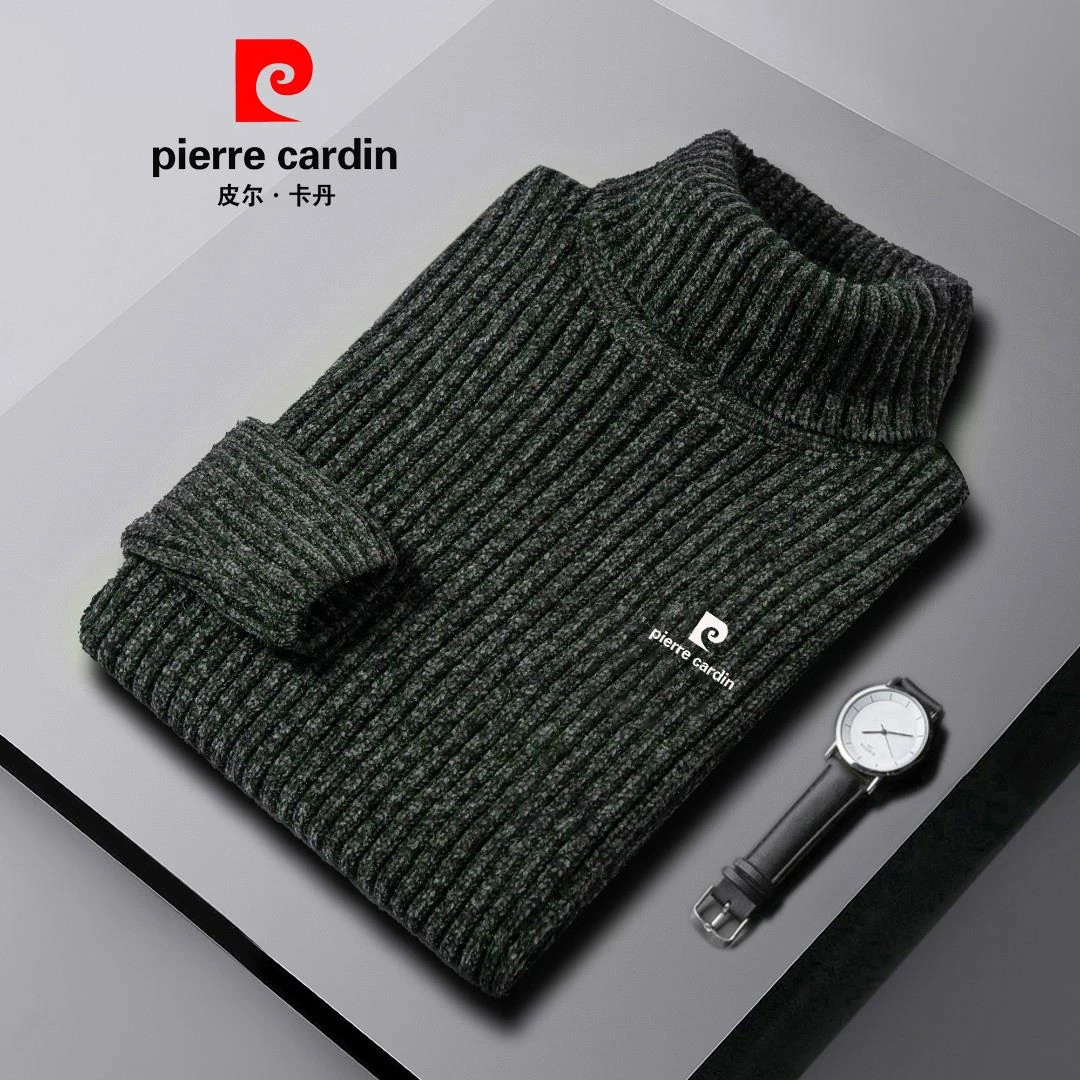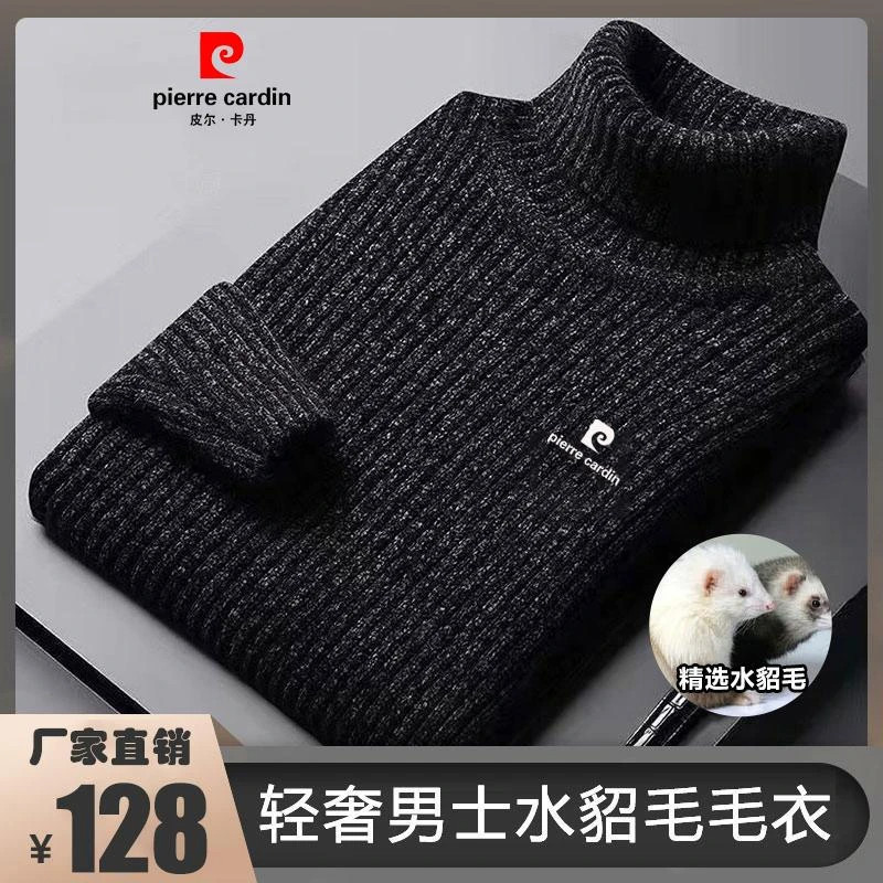 皮尔卡丹高档男士水貂绒毛衣秋冬加绒加厚高领套头保暖羊毛打底衫
