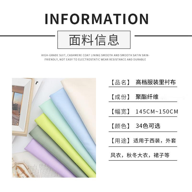 春夏高密服装里衬布料 大衣西装裙子里布高档秋冬防静电内衬面料