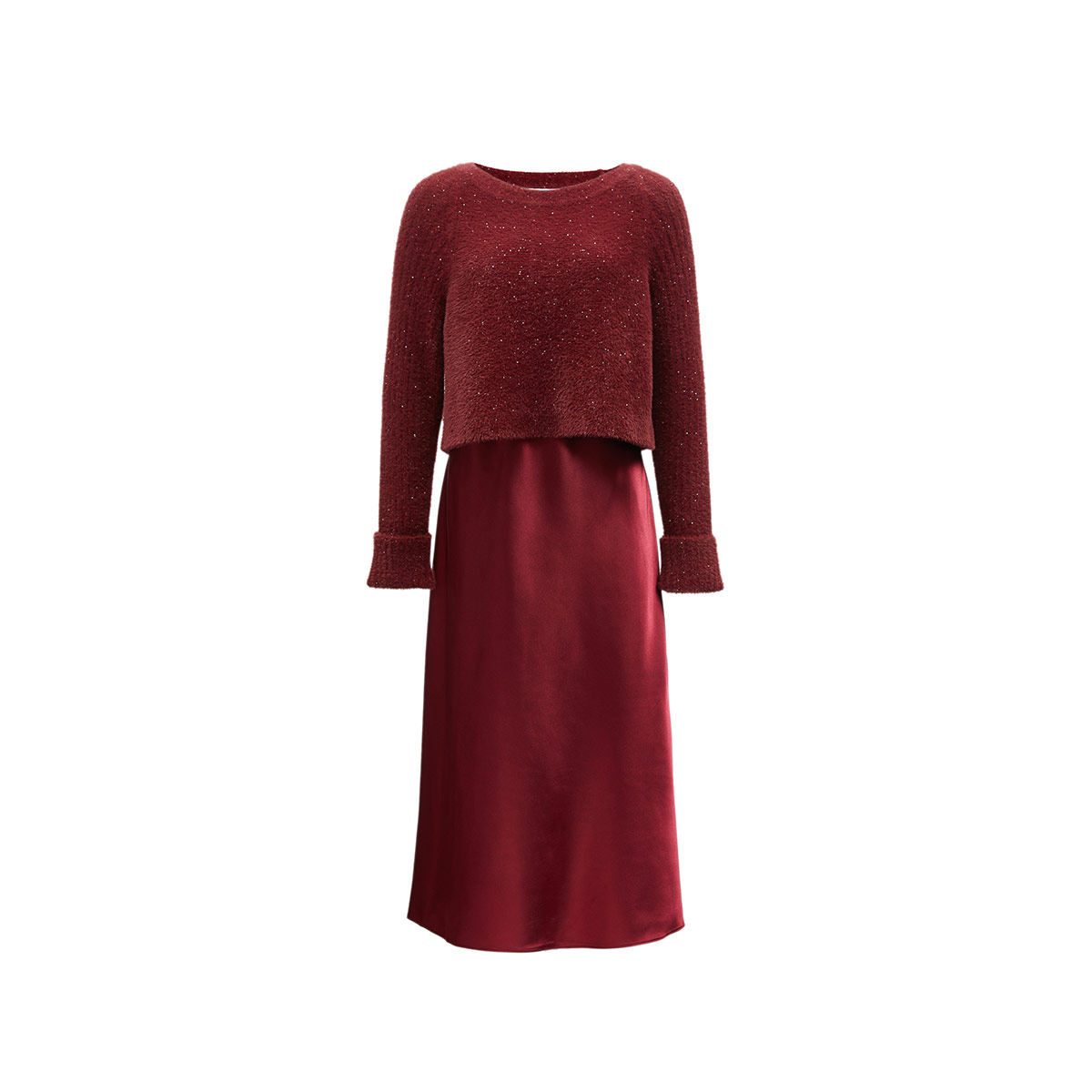 绫致ONLY秋冬新款时尚潮流遮肉套装长裙圆领连衣裙女百搭