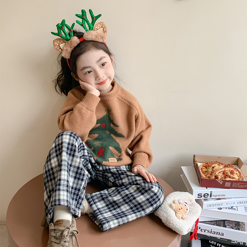 女童毛衣秋冬季2024新款女孩洋气上衣儿童新年冬装加厚针织打底衫