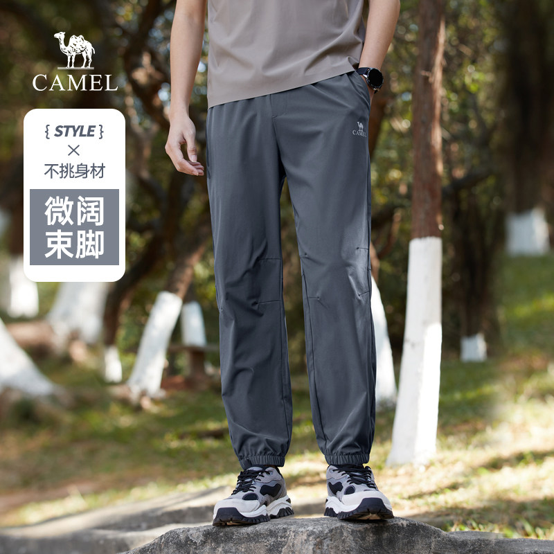 【高弹速干】骆驼男装运动裤男士春夏季薄款透气束脚黑色休闲长裤