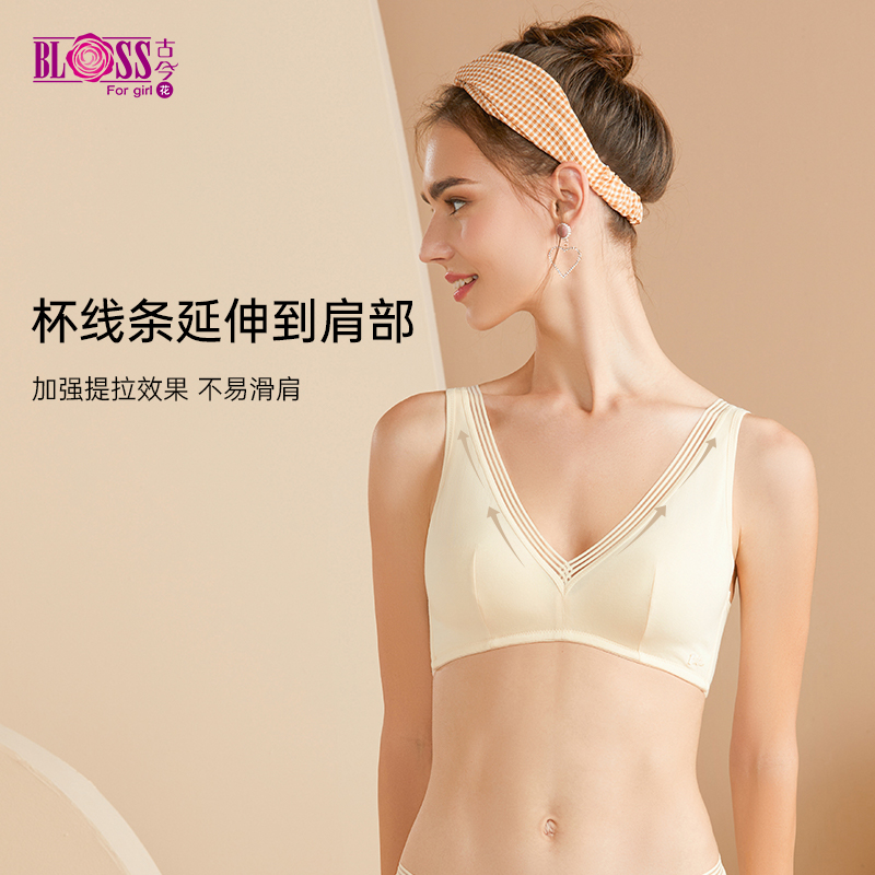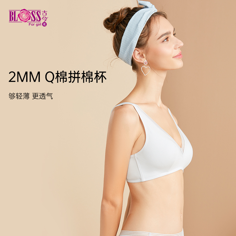 BLOSS/古今花商场同款少女仿钢圈透气孔拼棉杯聚拢文胸罩