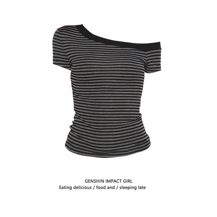 甜辣妹撞色条纹短袖T恤女夏季新款修身显瘦时尚洋气外穿百搭上衣