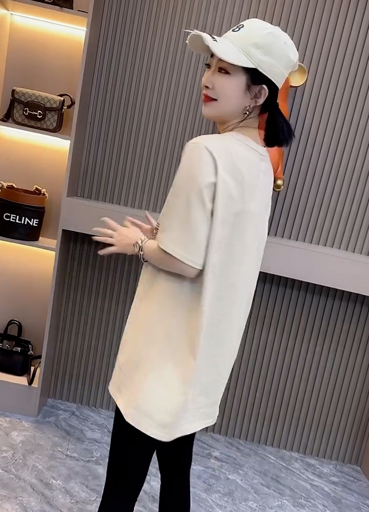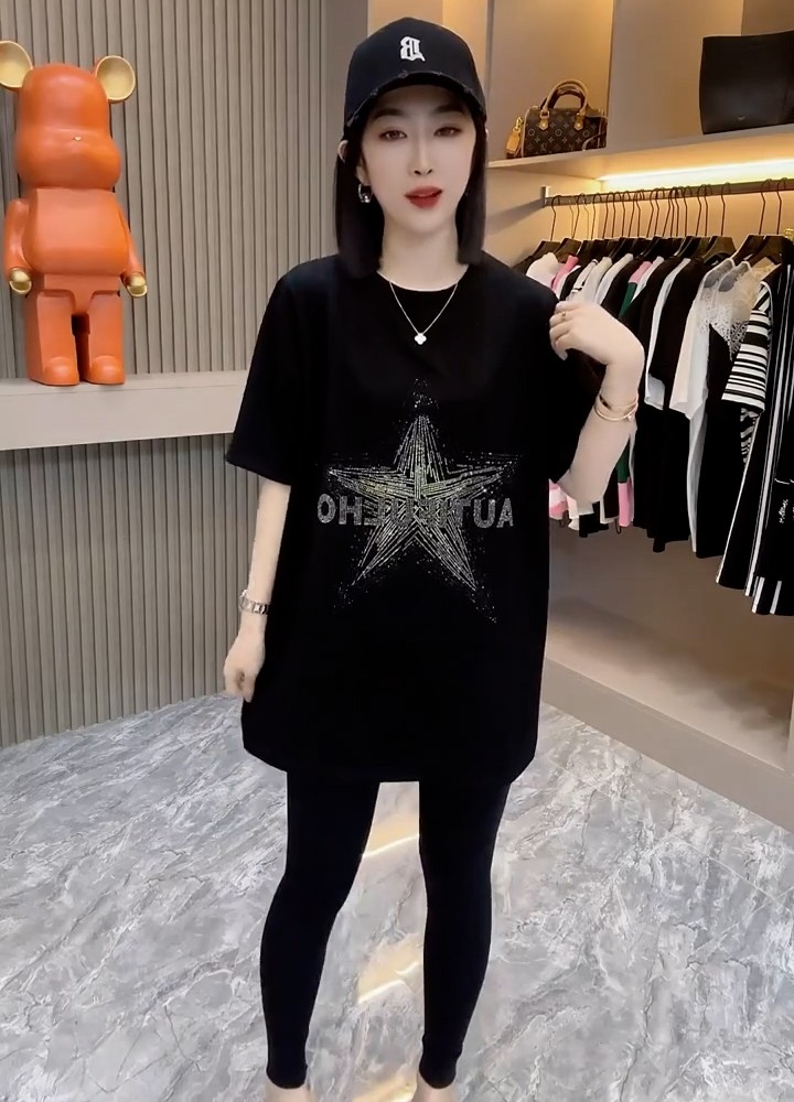 欧洲站潮牌五角星烫钻纯棉短袖T恤女夏季2025新款宽松中长款上衣