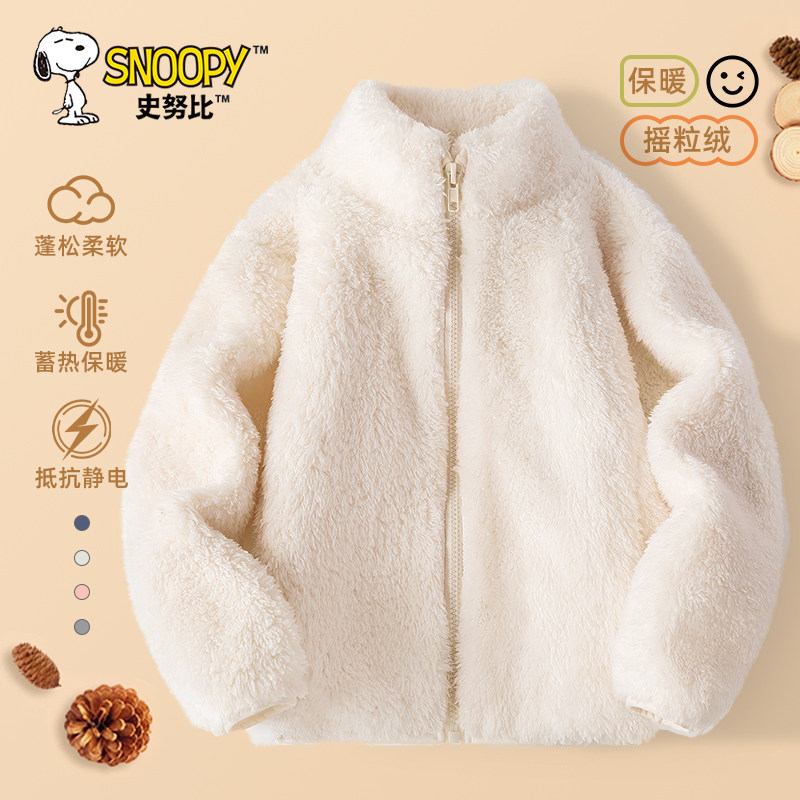 史努比童装女童摇粒绒外套秋冬女孩冬季保暖冬装儿童加厚加绒开衫