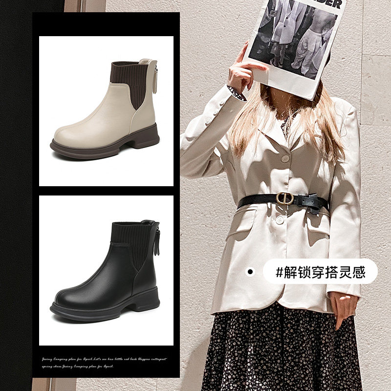 时装靴时尚休闲粗跟后拉链中跟