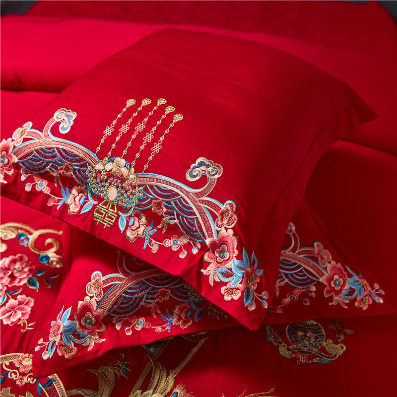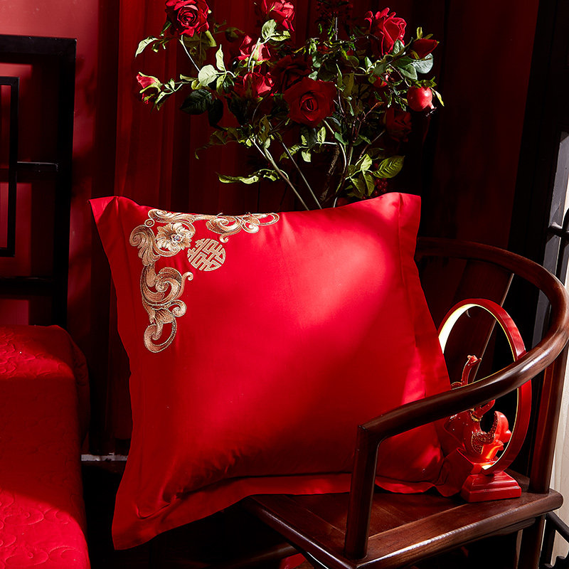 果芙大靠垫全棉大红刺绣靠枕