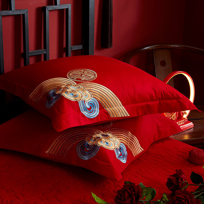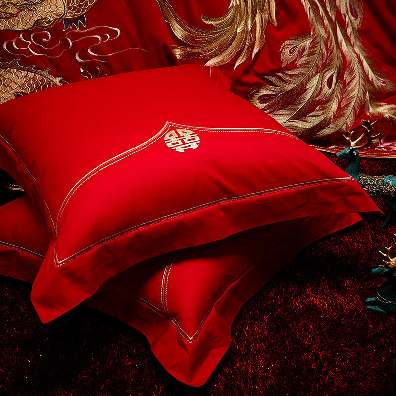 婚庆大红喜庆纯棉靠垫枕套抱枕一对60*60CM结婚房陪嫁礼床上用品