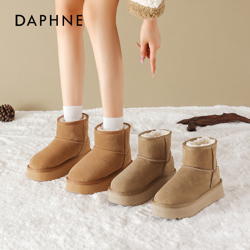 达芙妮厚底雪地靴女保暖棉鞋棉靴