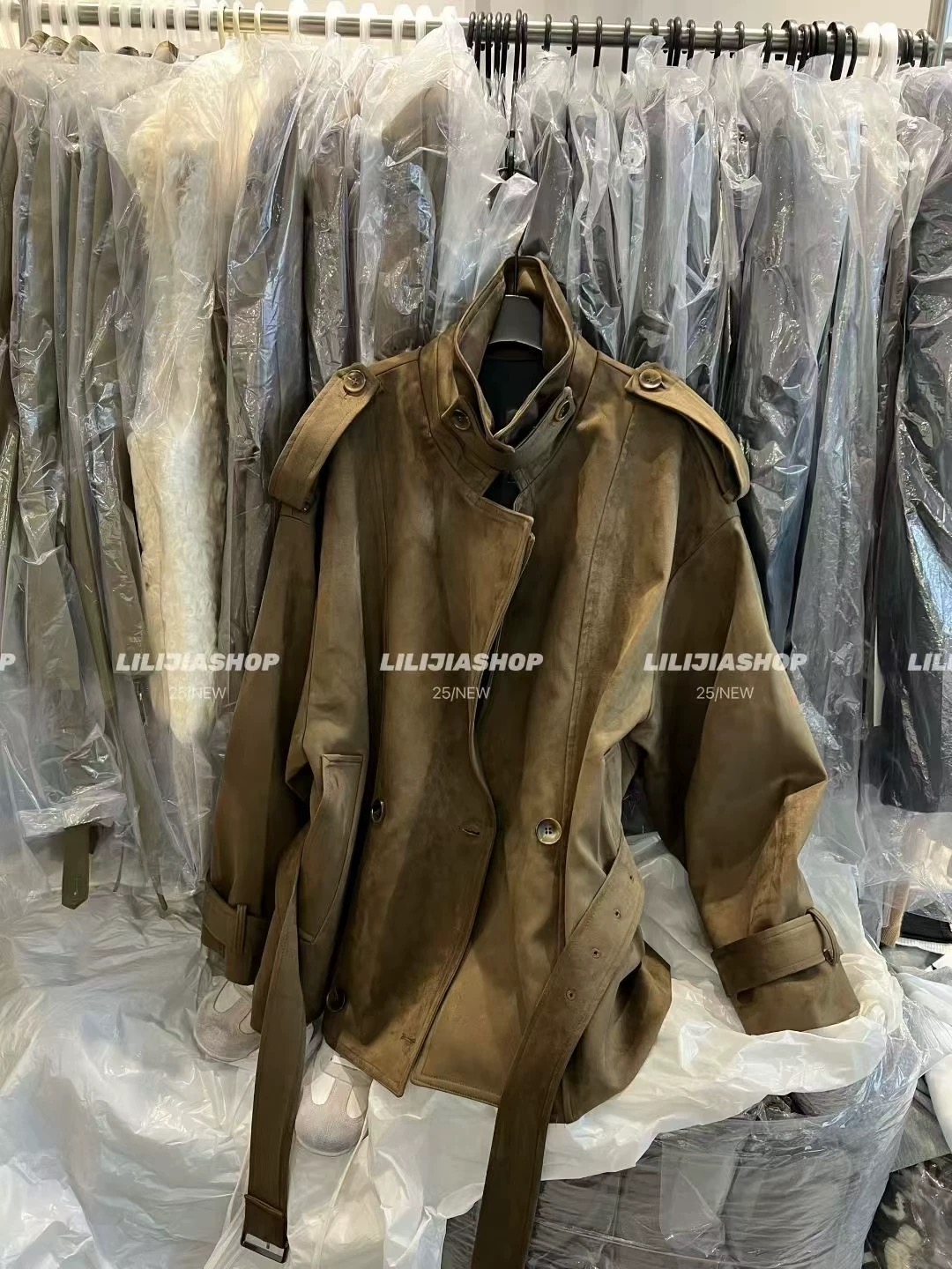 韩国东大门2025秋冬新款时尚翻领长袖简约基础风衣女宽松显瘦外套