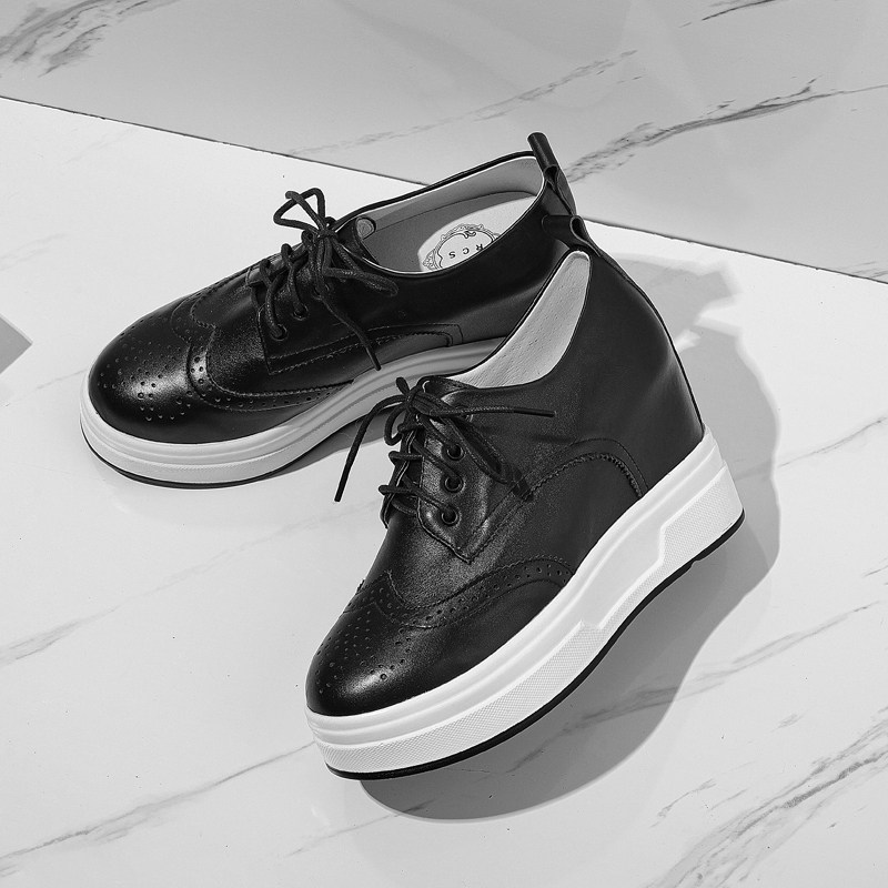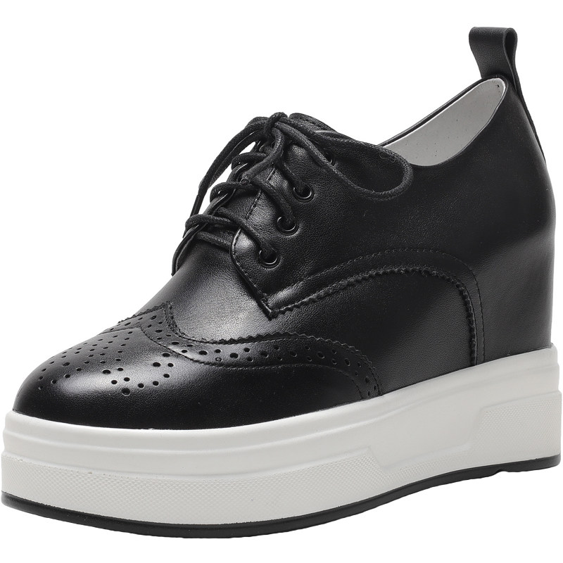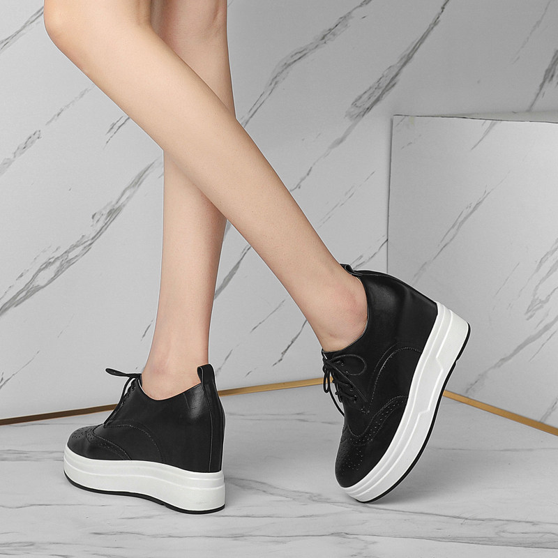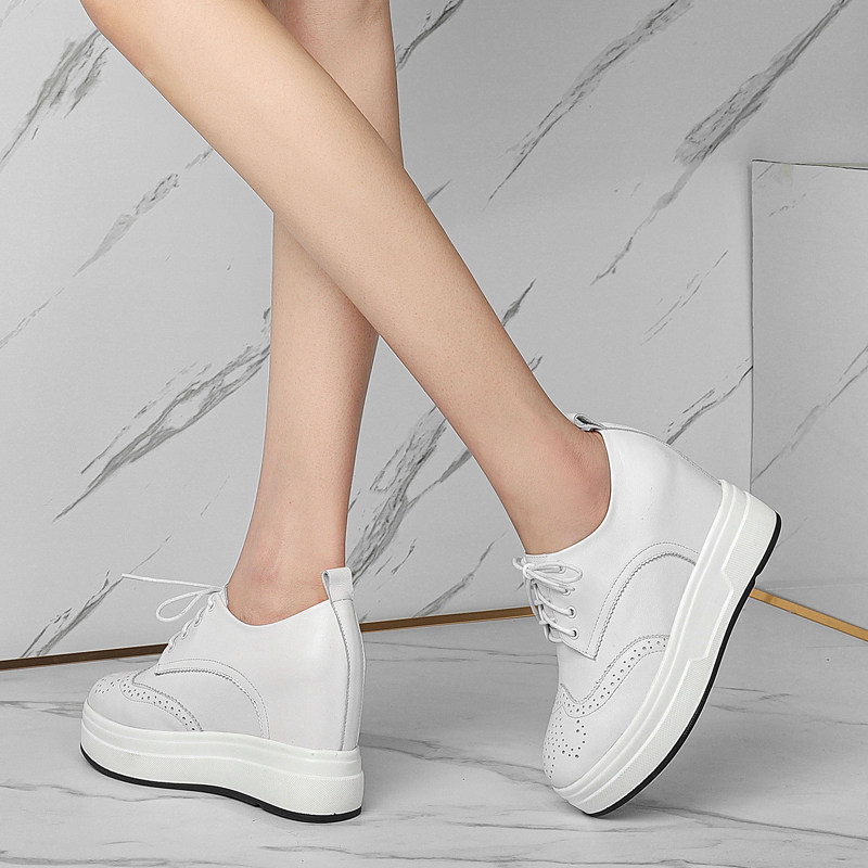 小白鞋女2022年秋季真皮系带厚底松糕9cm内增高坡跟休闲旅游单鞋