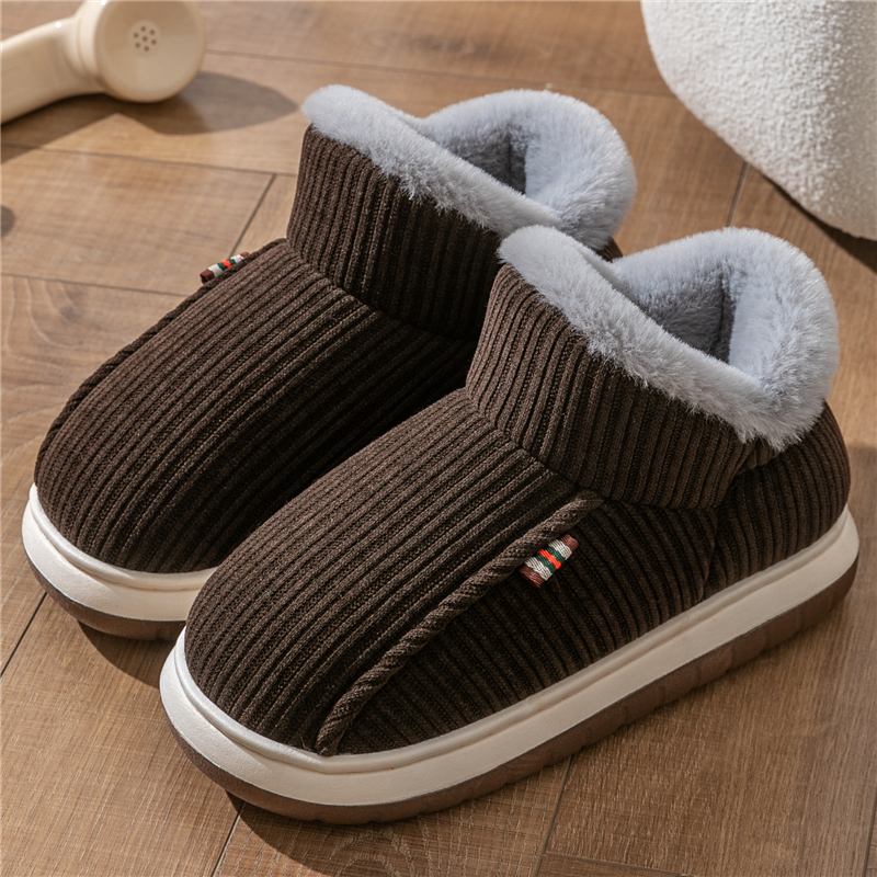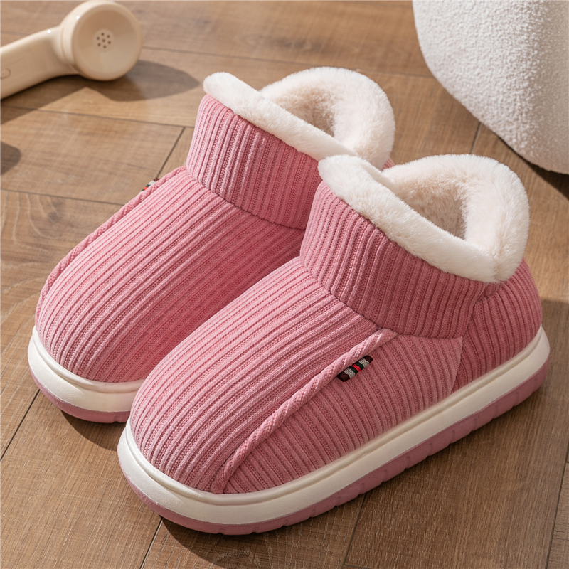 冬季男女情侣款加绒加厚包跟棉拖鞋居家外穿防滑厚底保暖毛毛棉鞋
