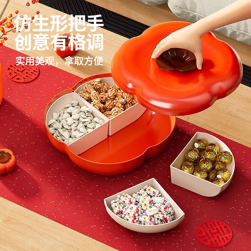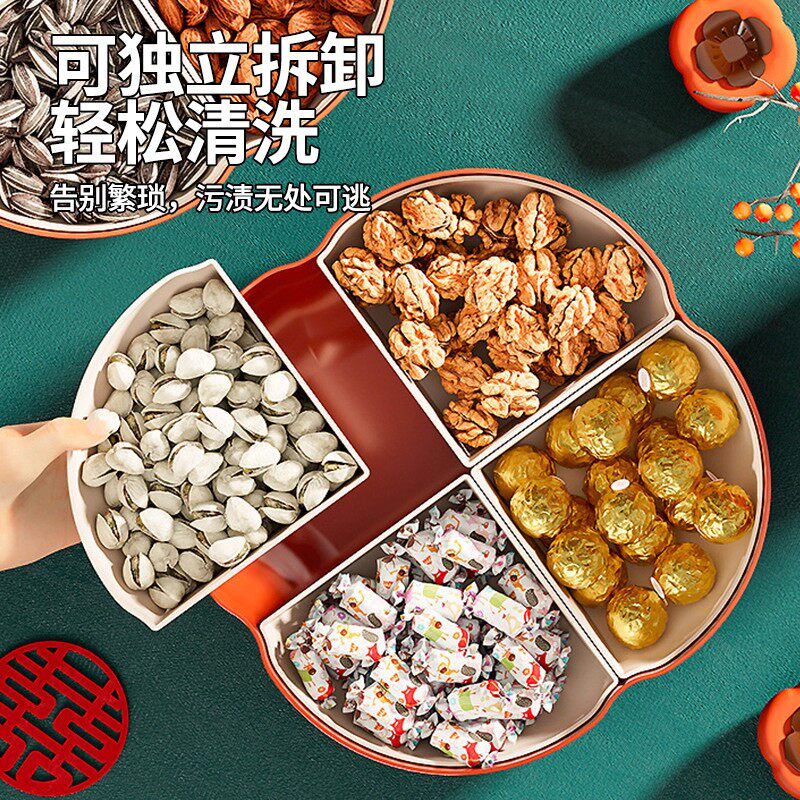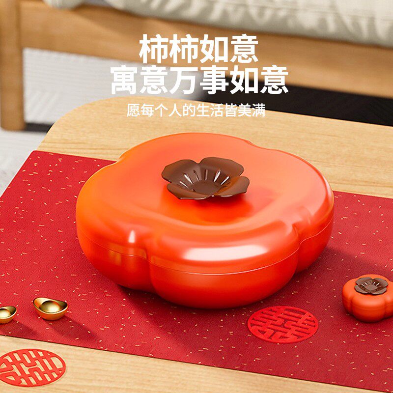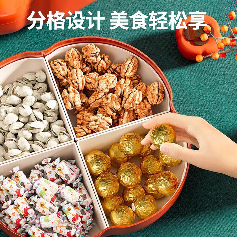 柿柿如意干果盘客厅茶几家用零食摆放盘瓜子糖果盒新年分格收纳盒