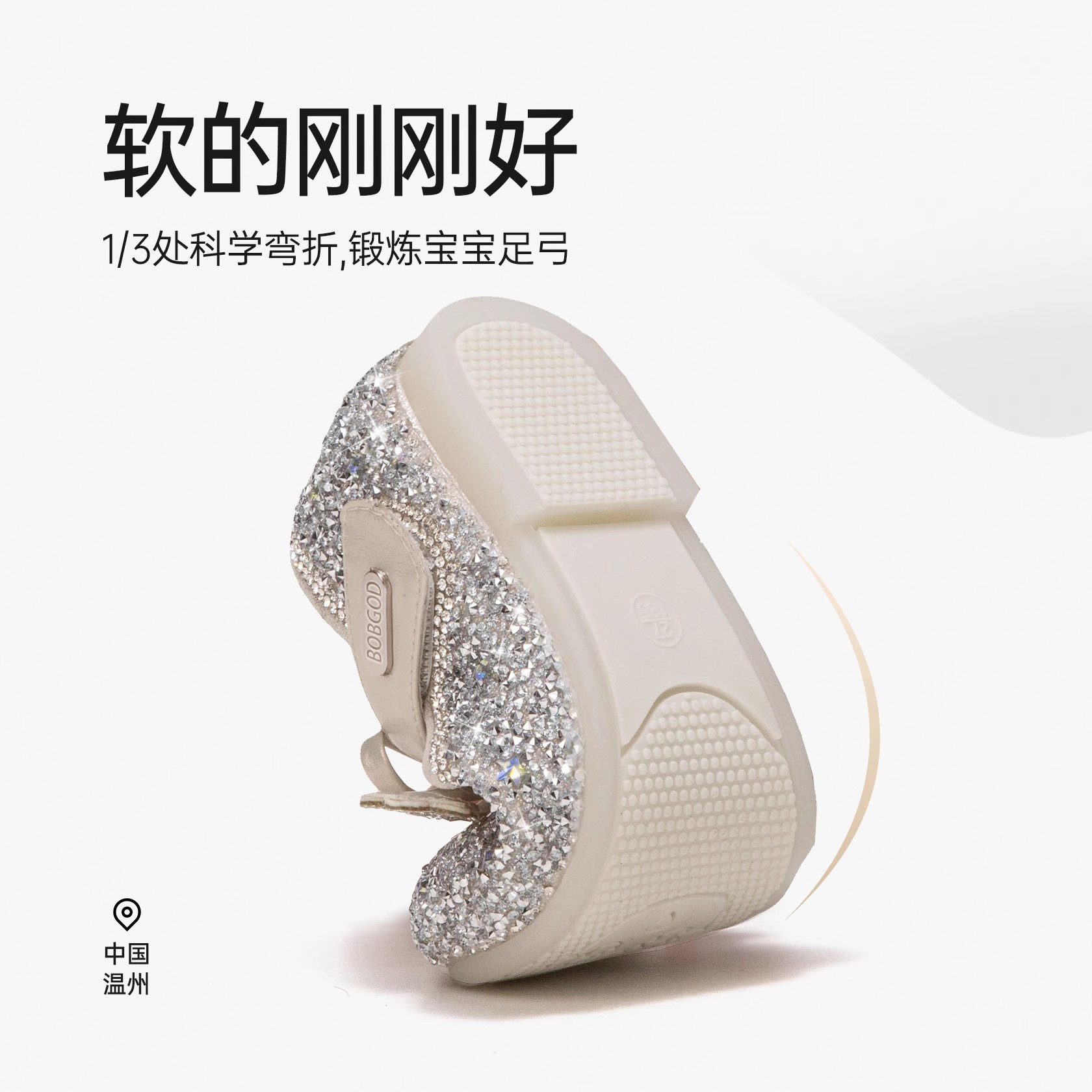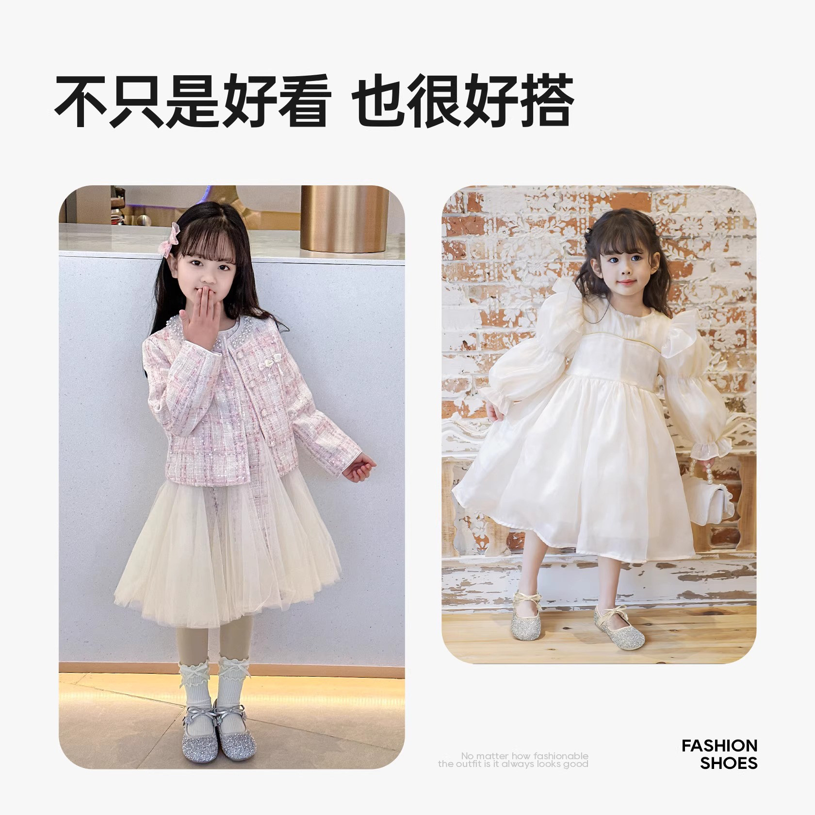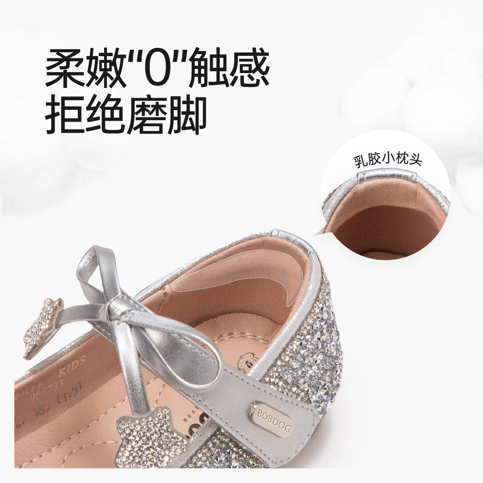 巴布豆真皮女童鞋公主鞋2026春秋季儿童水晶鞋女孩小皮鞋爱莎单鞋