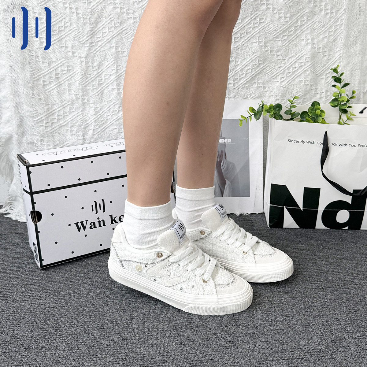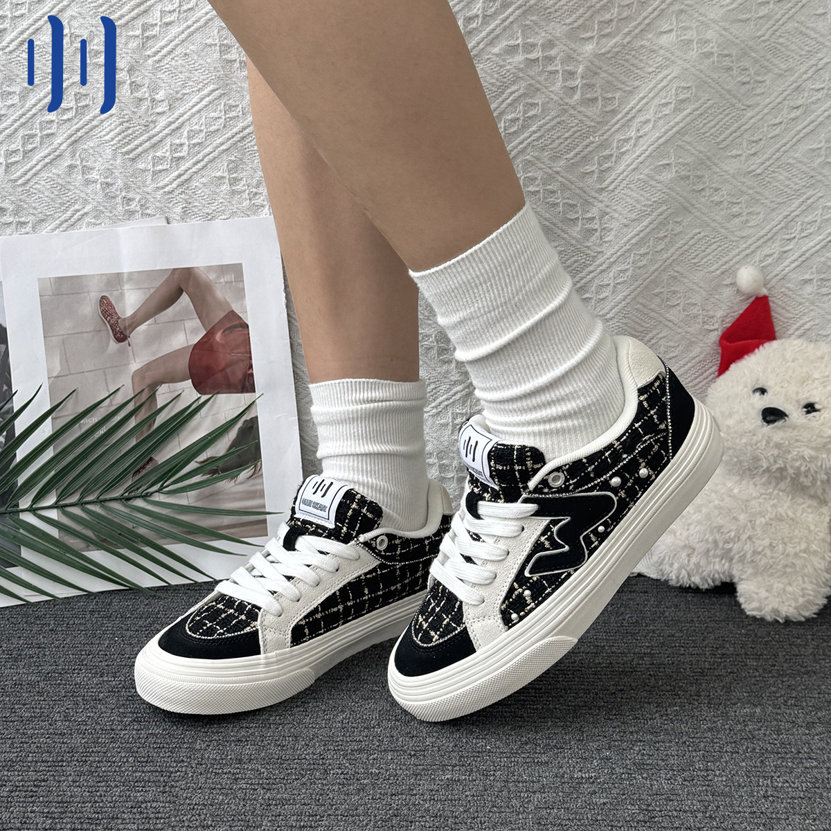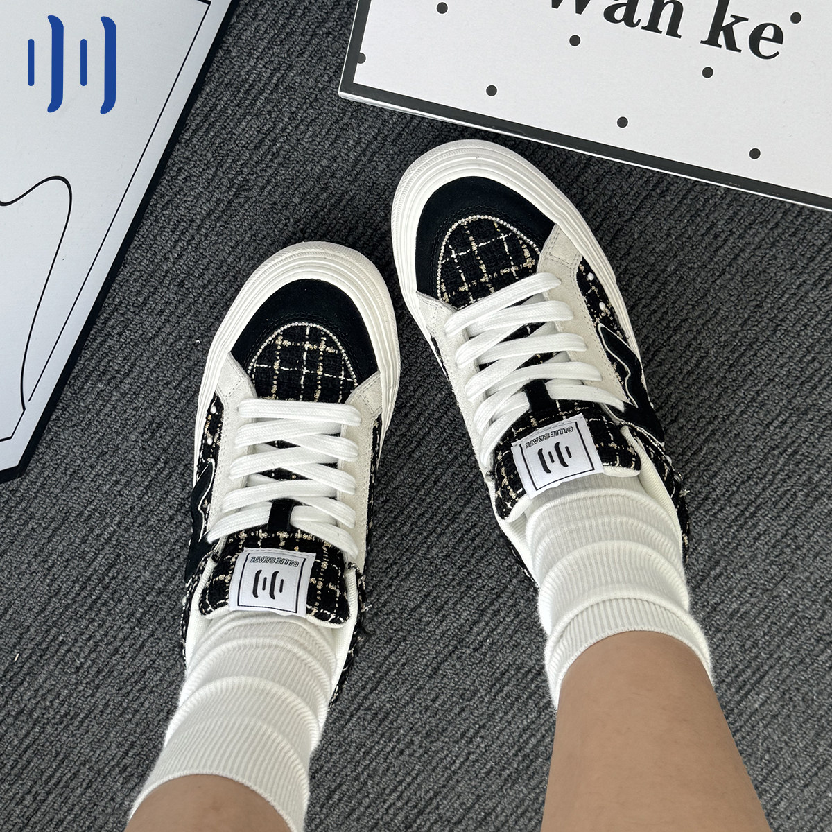 顽刻ollieskate黑白小香风冬季校园风W系列低帮男女国潮滑板鞋