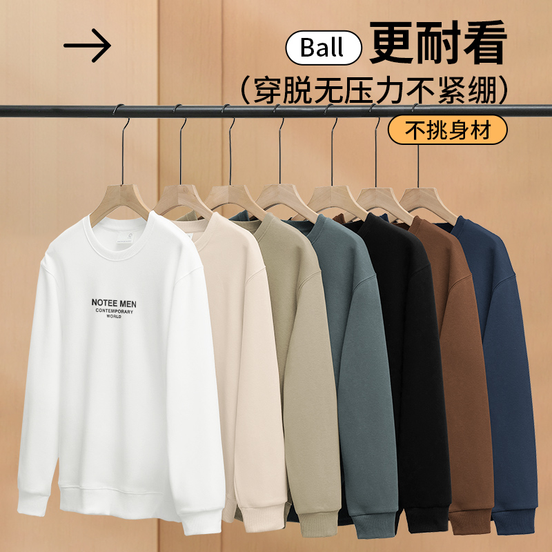 320g重磅卫衣男加绒加厚打底衫秋冬保暖套头无帽宽松圆领长袖t恤