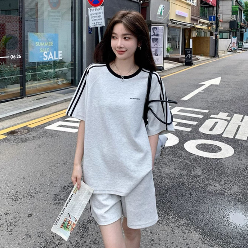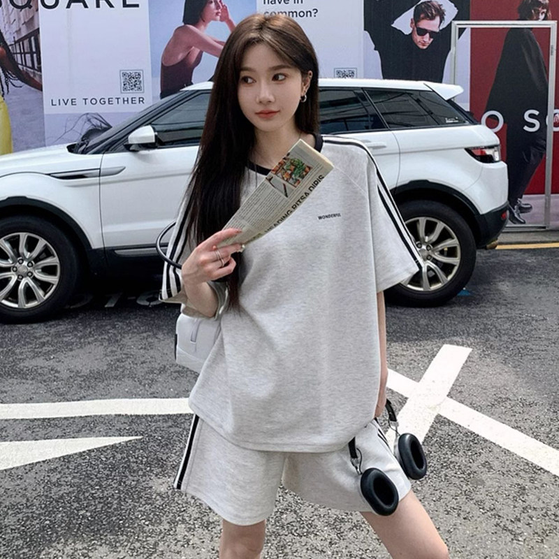 休闲运动服套装女夏季新款学生宽松韩版时尚短袖短裤跑步两件套潮