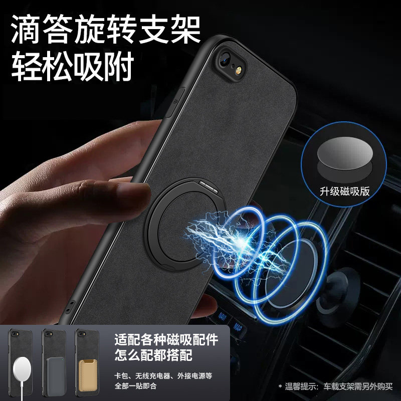 适用苹果6手机壳磁吸支架iphone新款6s男款羊巴皮苹果5磨砂5s外壳6plus男士6splus全包高级感简约硅胶防摔