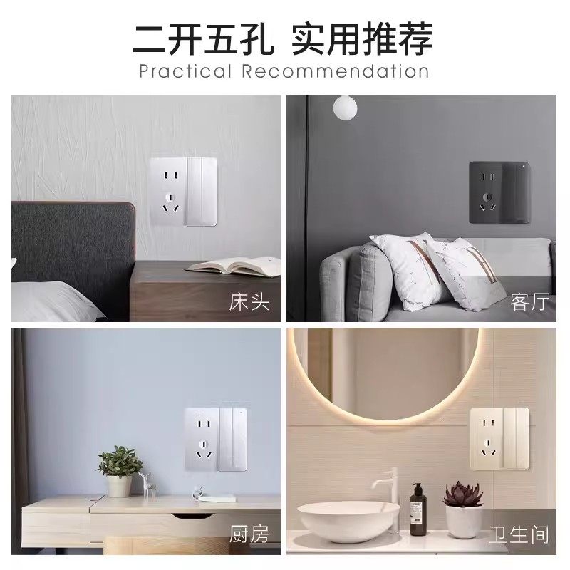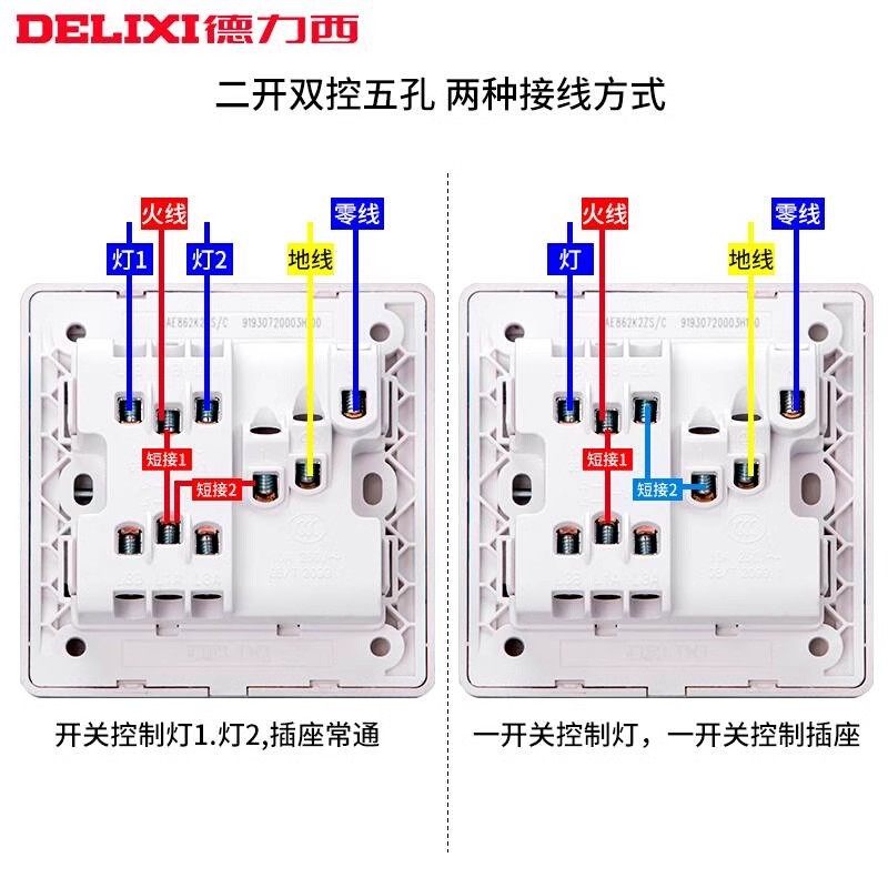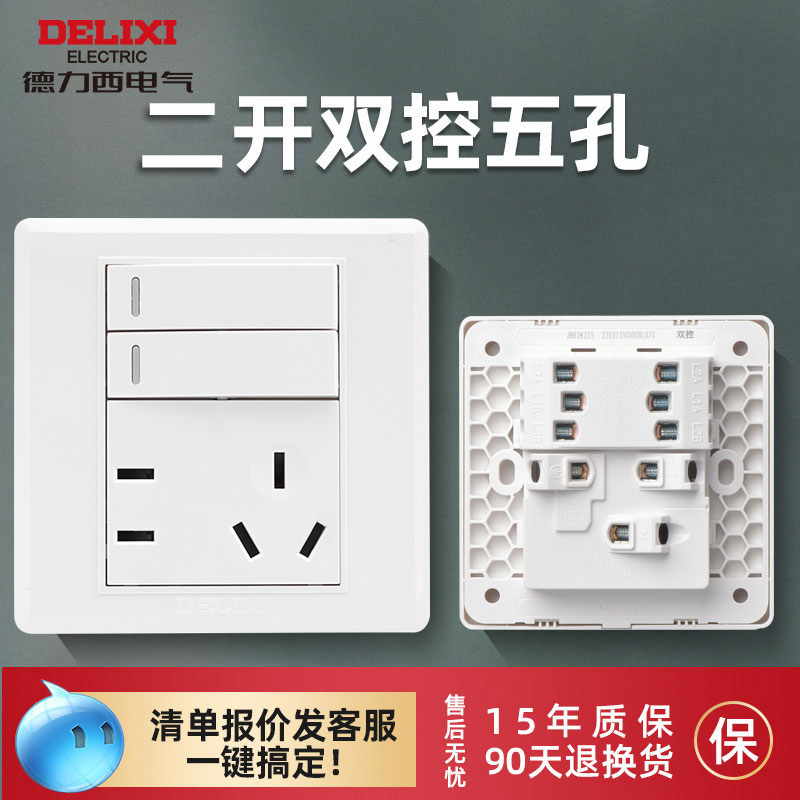 德力西二开双控五孔86型开关插座