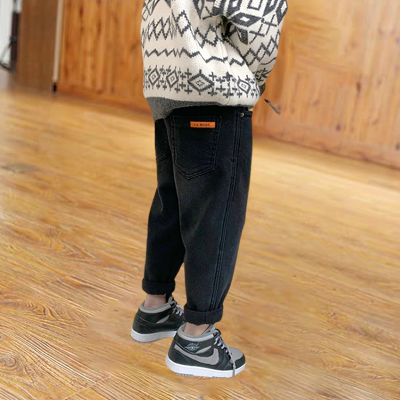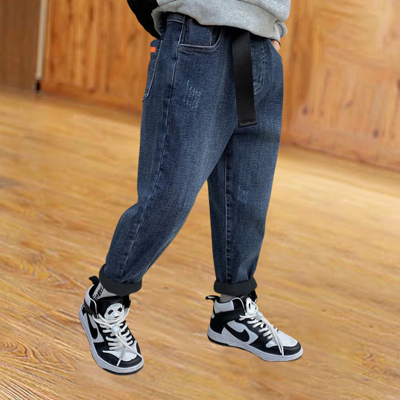 男童加绒牛仔裤一体绒秋冬季2024新款长裤中大童男孩外穿儿童裤子