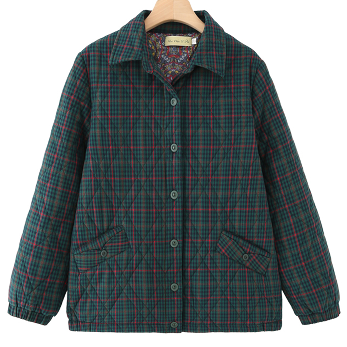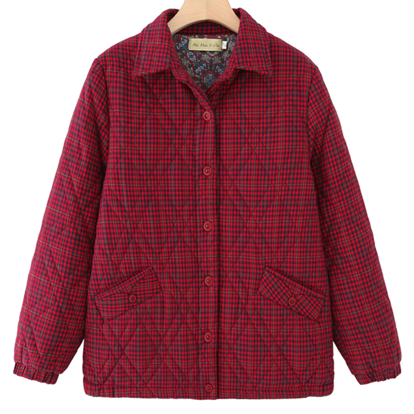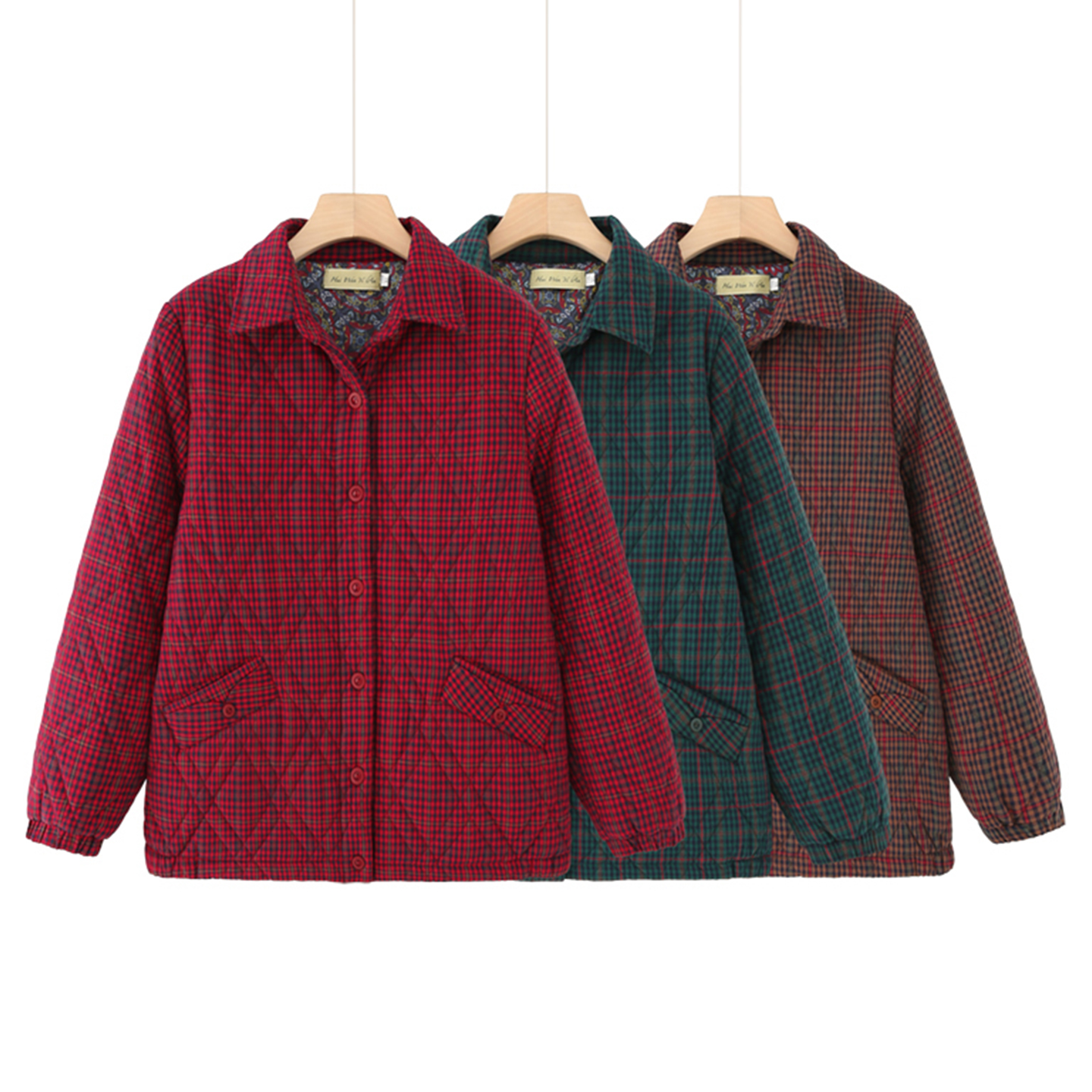 60-70岁妈妈装格子棉衣2025秋冬新款大码夹棉外套时尚中老年女装