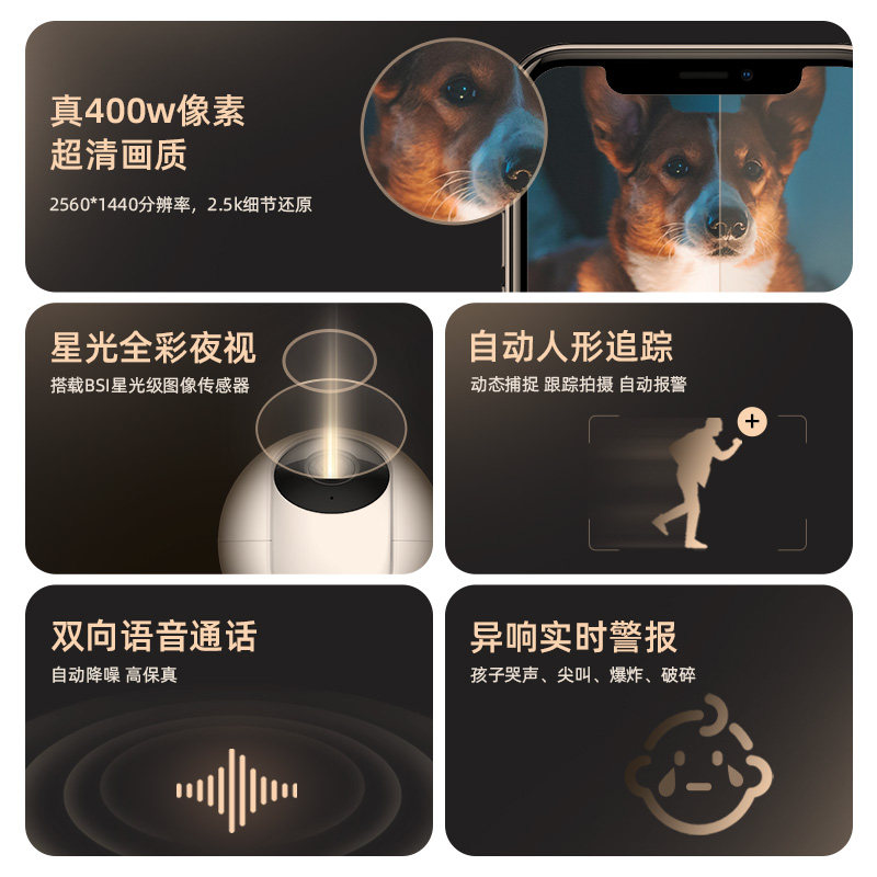 小白智能家用摄像头监控智能摄影头400w2.5K监控器室机远程对讲夜视360已接入米家APP