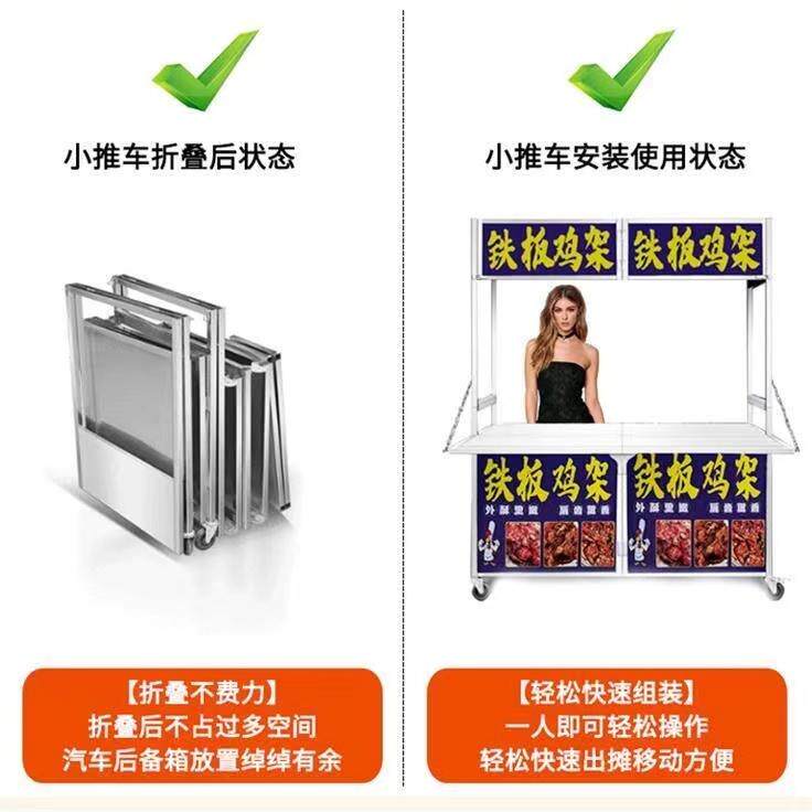 不锈钢摆摊小推车移动地摊车夜市手推餐车折叠款多功能卤肉小吃车