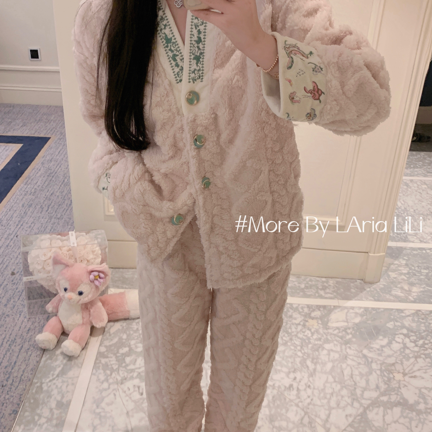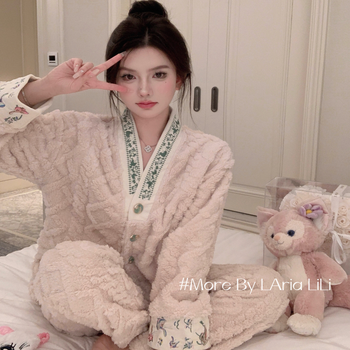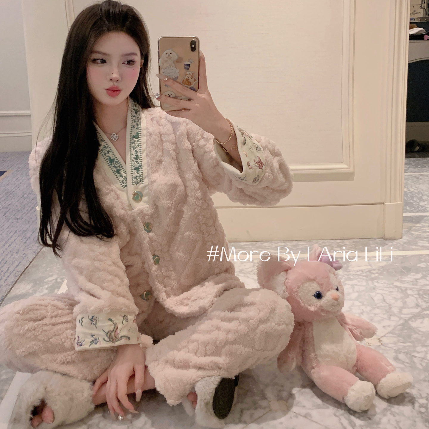 蝴蝶刺绣 珊瑚绒睡衣女秋冬款2025新款冬季加绒加厚高级感家居服